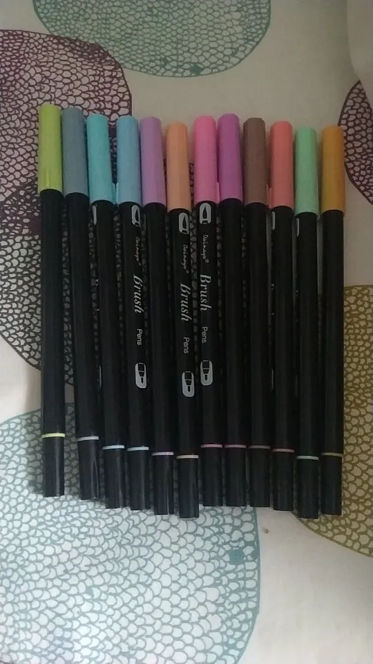 Это пастельные тона. Нормальное качество. Быстро сохнет и в бумаге родия не проходит. Я заказал их для моей 12-летней дочери. Крышки тонкого наконечника немного твердые, их немного трудно удалить и надеть. Вы должны быть уверены, что они нажимают, чтобы они не оставались свободными и высохли.
