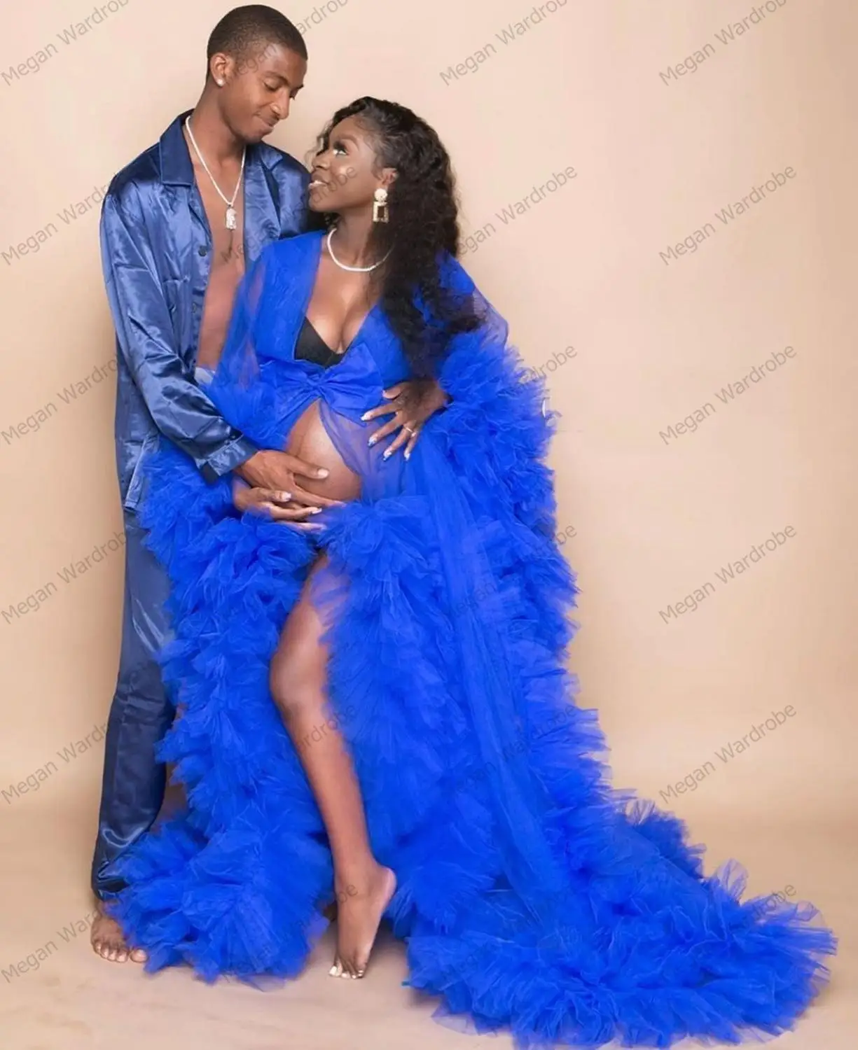 Королевский синий тюль платья для беременных с длинным рукавом Женские Большие размеры тюлевые платья прозрачный тюль халат для беременных