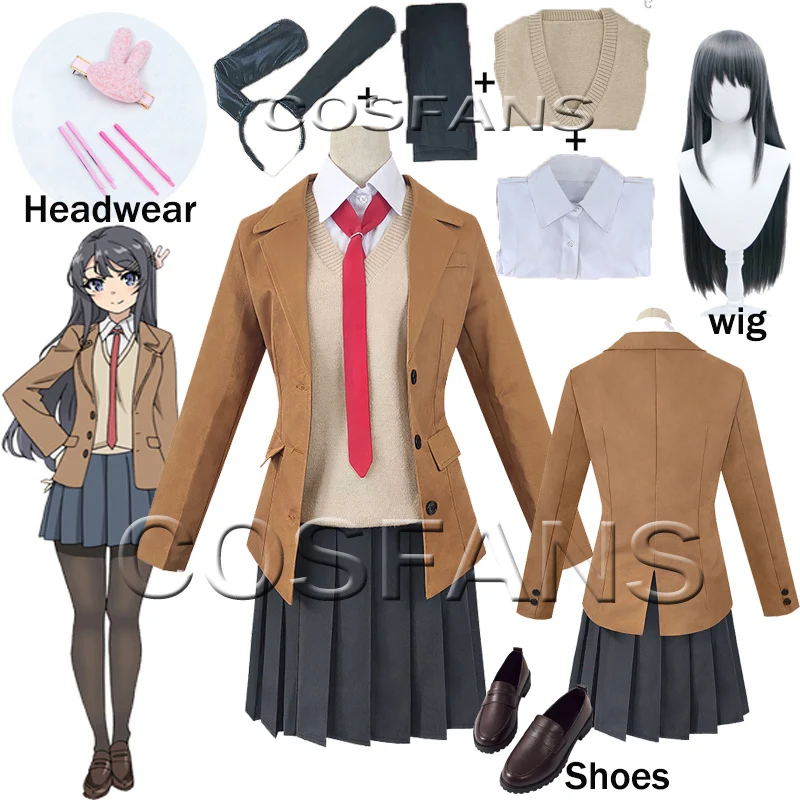 Костюм Sakurajima Mai, парик для косплея сериала Seishun Buta Yarou, женская школьная форма на Хэллоуин, школьные костюмы для девочек на вечеринку, парик