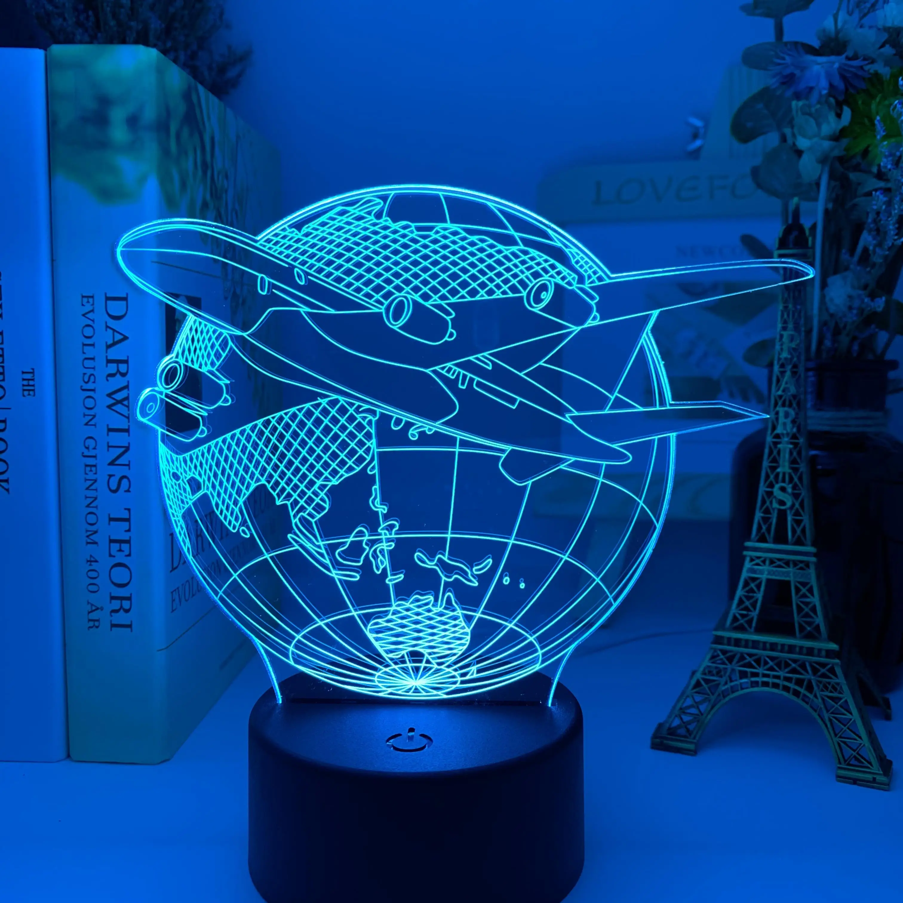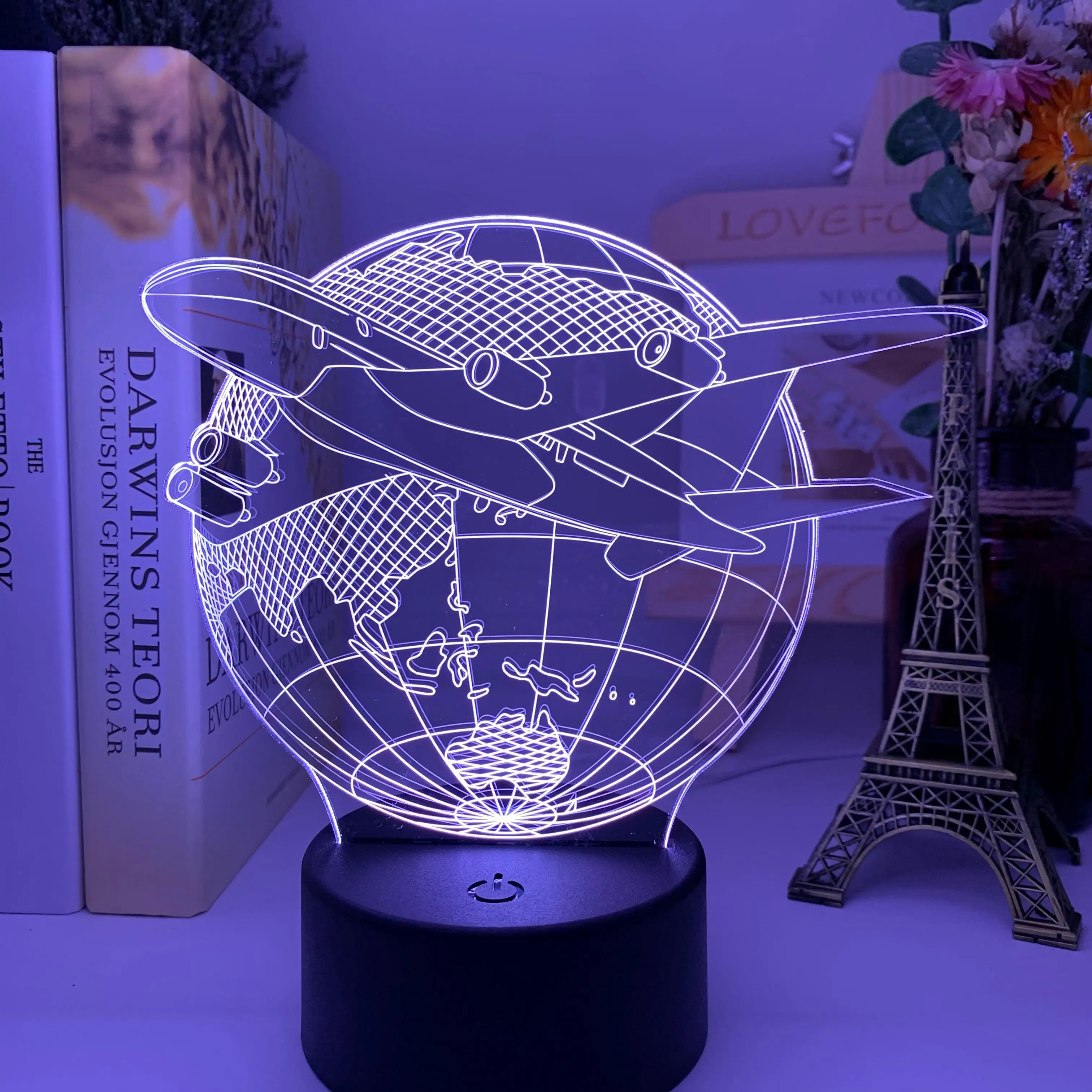 3D лампа самолет светодиодный сенсорный Сенсор Батарея приведенный в действие Ночной светильник в виде Винни Пуха для детской комнаты, Декоративные Атмосферу светодиодный ночной Светильник Детские комплекты одежды с изображением самолета подарок
