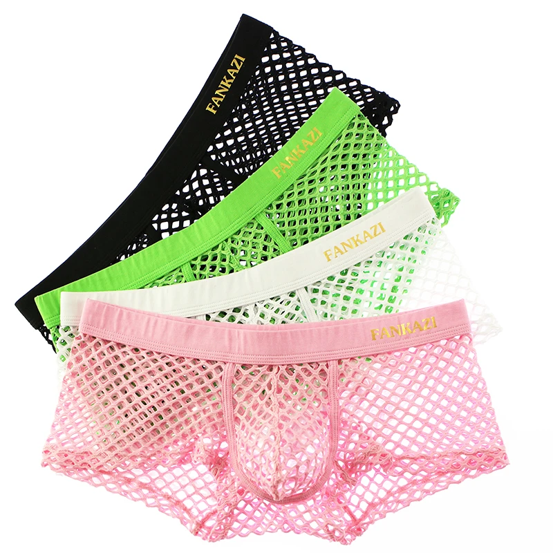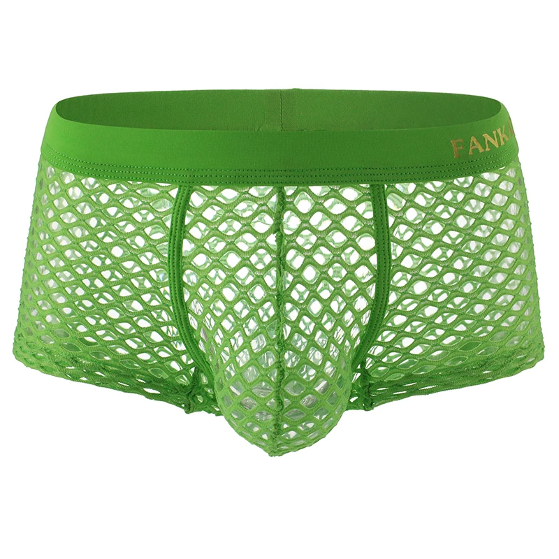 Трусы-боксеры мужские прозрачные в сеточку, ажурные дышащие трусы-плавки, нижнее белье для геев, размер XL