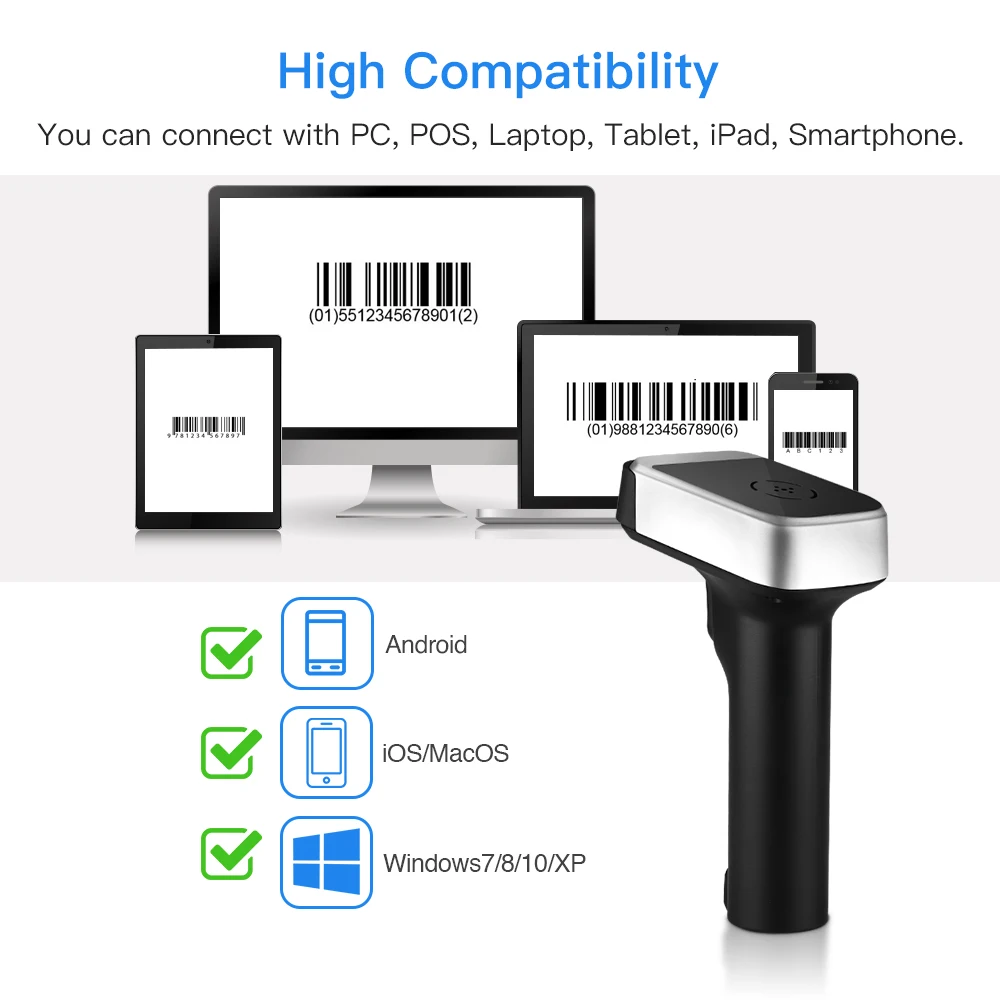 Проводной и беспроводной сканер штрих-кодов Eyoyo 2,4G, портативный ручной сканер штрих-кодов CCD для POS, iPad, iPhone, телефонов Android, планшетов или компьютеров, ПК с USB-приемником