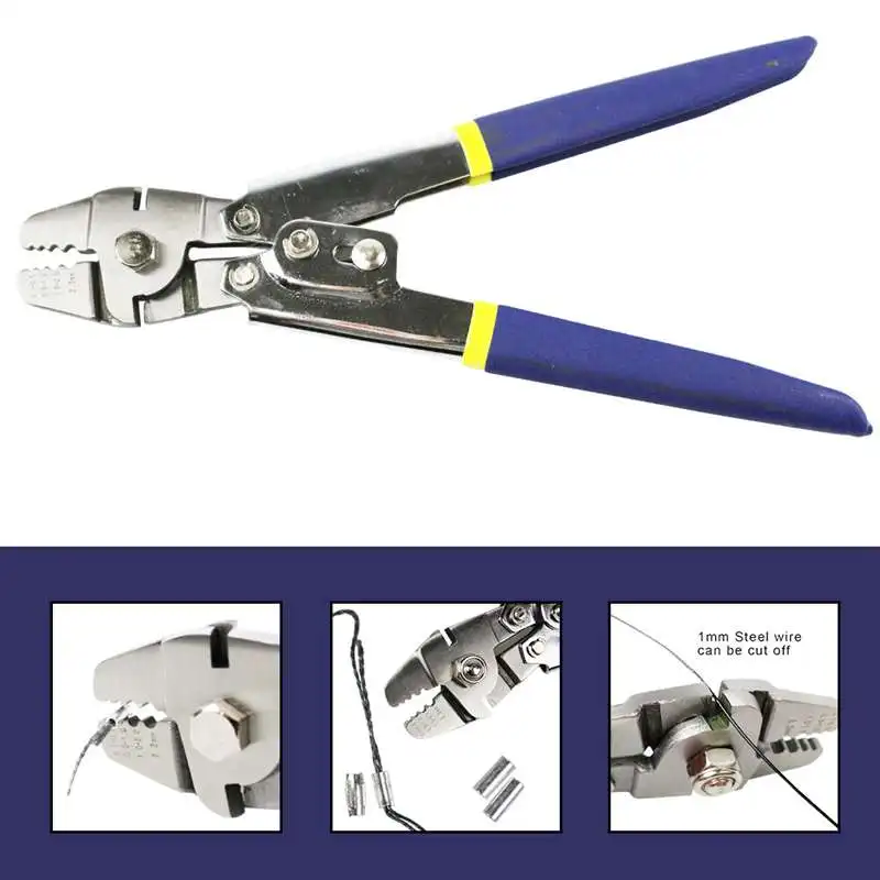 Тип товара: Высокоточный обжимной инструмент для троса с алюминиевым Двойным Зажимом обжимной соединитель втулкаХарактеристики продукта: обжимной инструмент С нескользящими захватами и самоблокирующимся механизмом делает его более расслабленным, чтобы обеспечить давлениеПрименение: инструмент для обжима координат с баррель наконечник может быть широко использован для провода веревки, кабельной линии поводки для собак и т. Д.Размер: 26 смМатериал: пластик + металлЦвет: синий + серебристыйПосылка:1 * обжимной инструмент для провода50 * M1.2 петля рукав50 * M1.5 петля рукав50 * M2 петля рукавТолько вышеуказанная посылка, другие товары не включены.Примечание: светильник и различные дисплеи могут привести к тому, что цвет товара на картинке немного отличается от реального. Допускается погрешность в измерениях +/- 1-3 см.