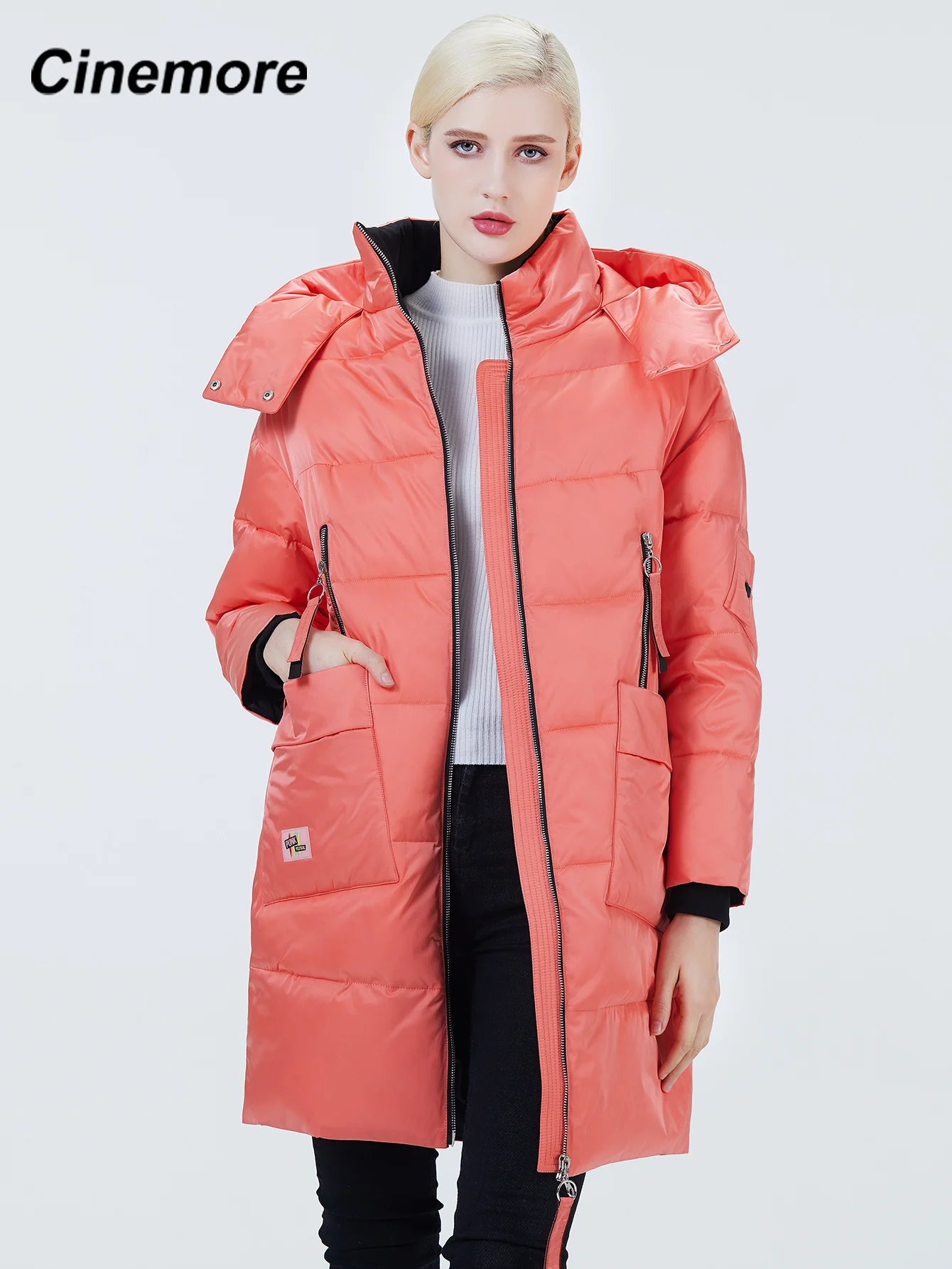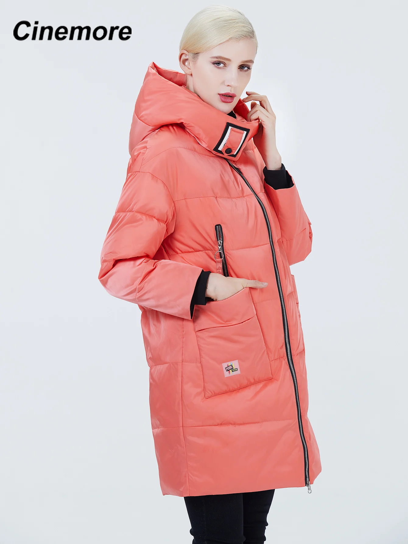 Женская парка на молнии, с манжетами, 2020, синемор, накладной карман, 2027