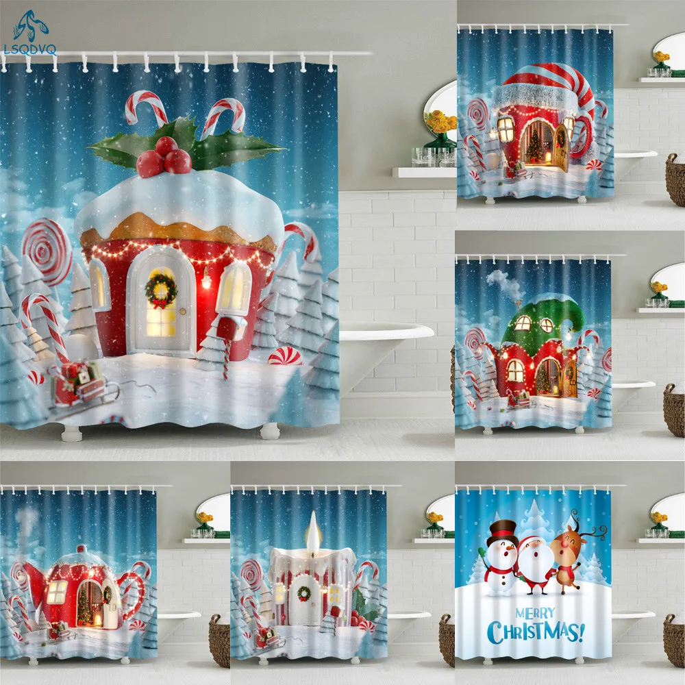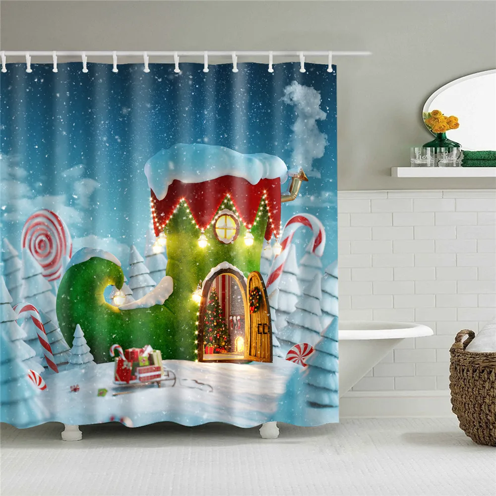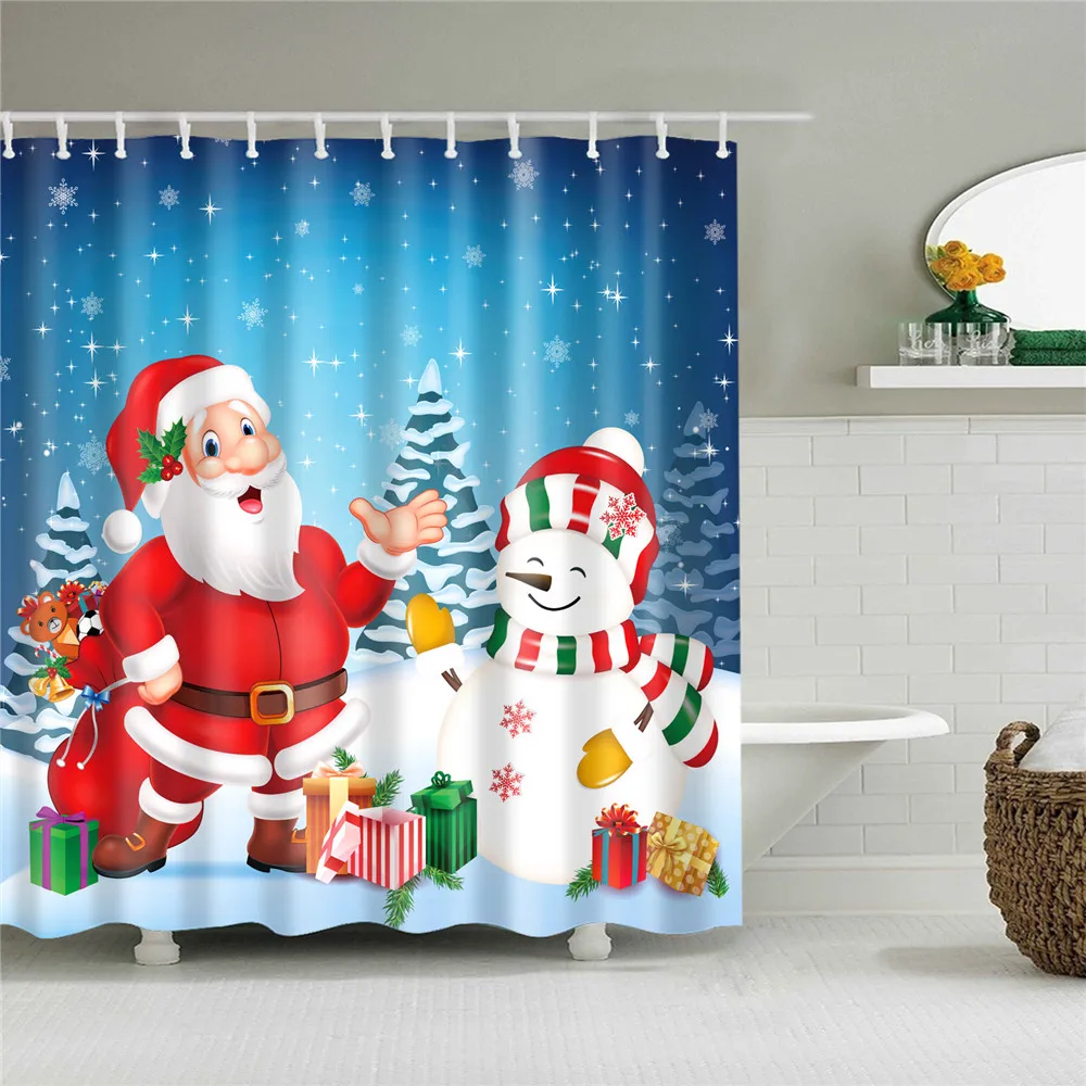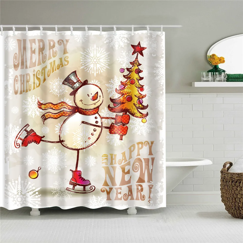 Занавеска для душа из полиэстера, водонепроницаемая, с рождественск...