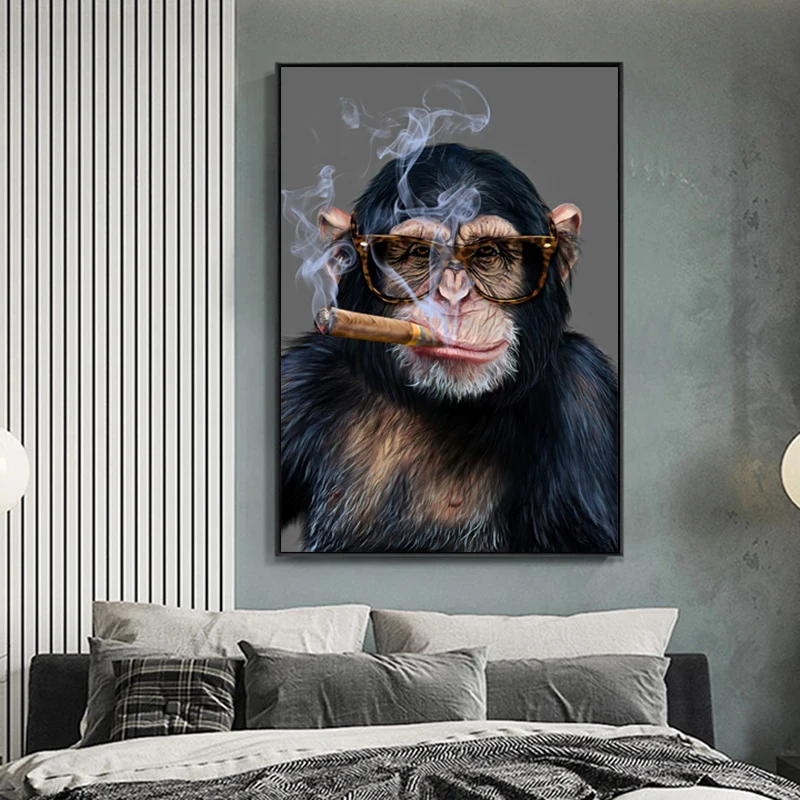 Плакат с обезьяной гориллой и курением, настенные картины для гости...