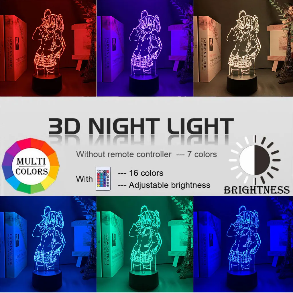 Светодиодный ночсветильник Rikka Takanashi для детской спальни, Рождественское украшение светильник в стиле аниме, Настольная 3d лампа Rikka Love Chunibyo, подарок на день рождения