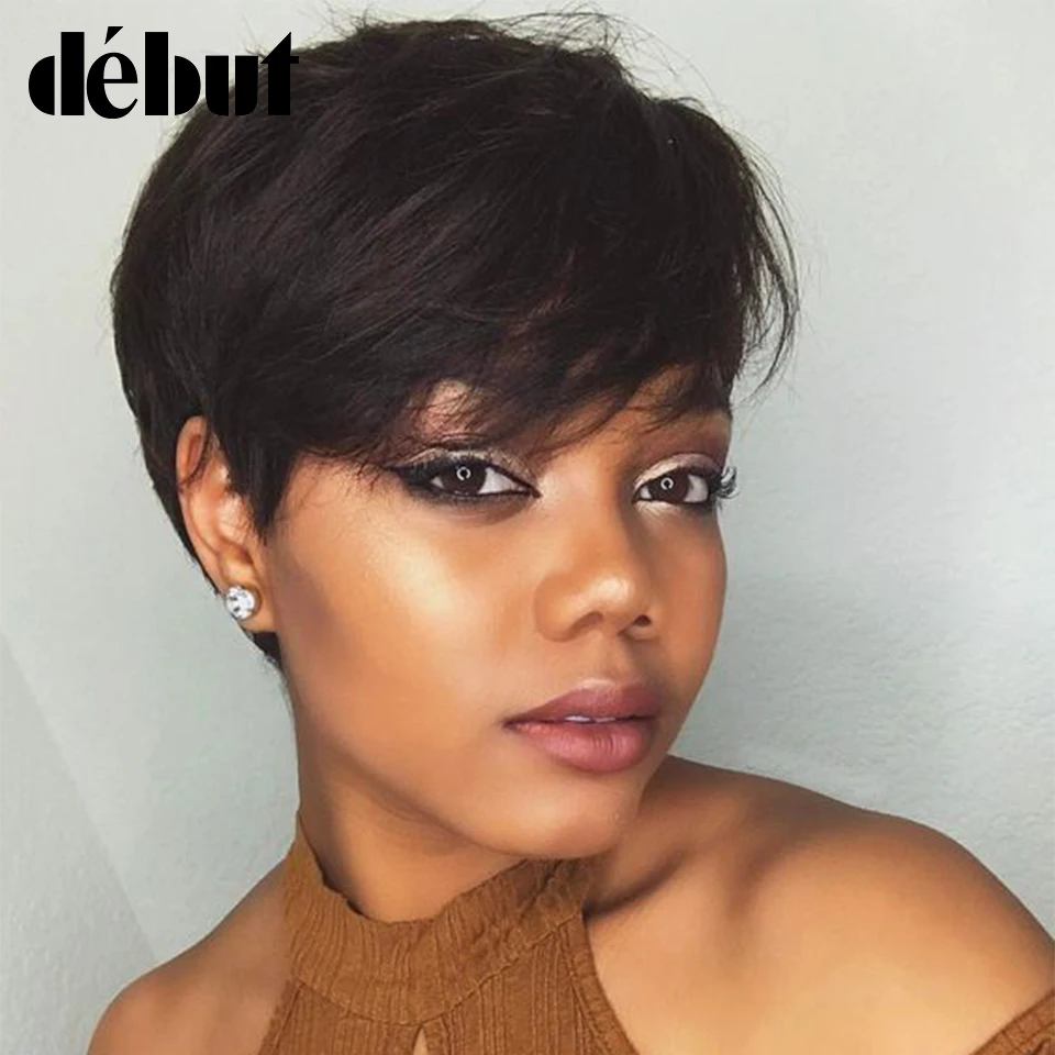 Дебютные парики Фея для черных женщин, бразильские прямые короткие парики боб, парики из человеческих волос Remy, дешевые коричневые человеческие волосы, полные парики