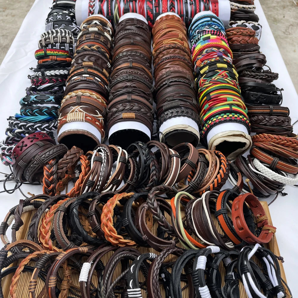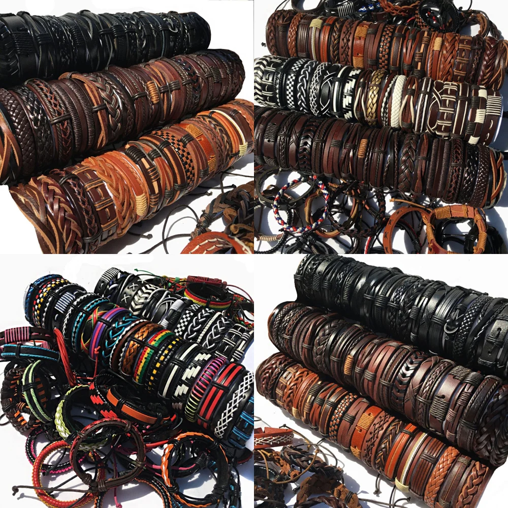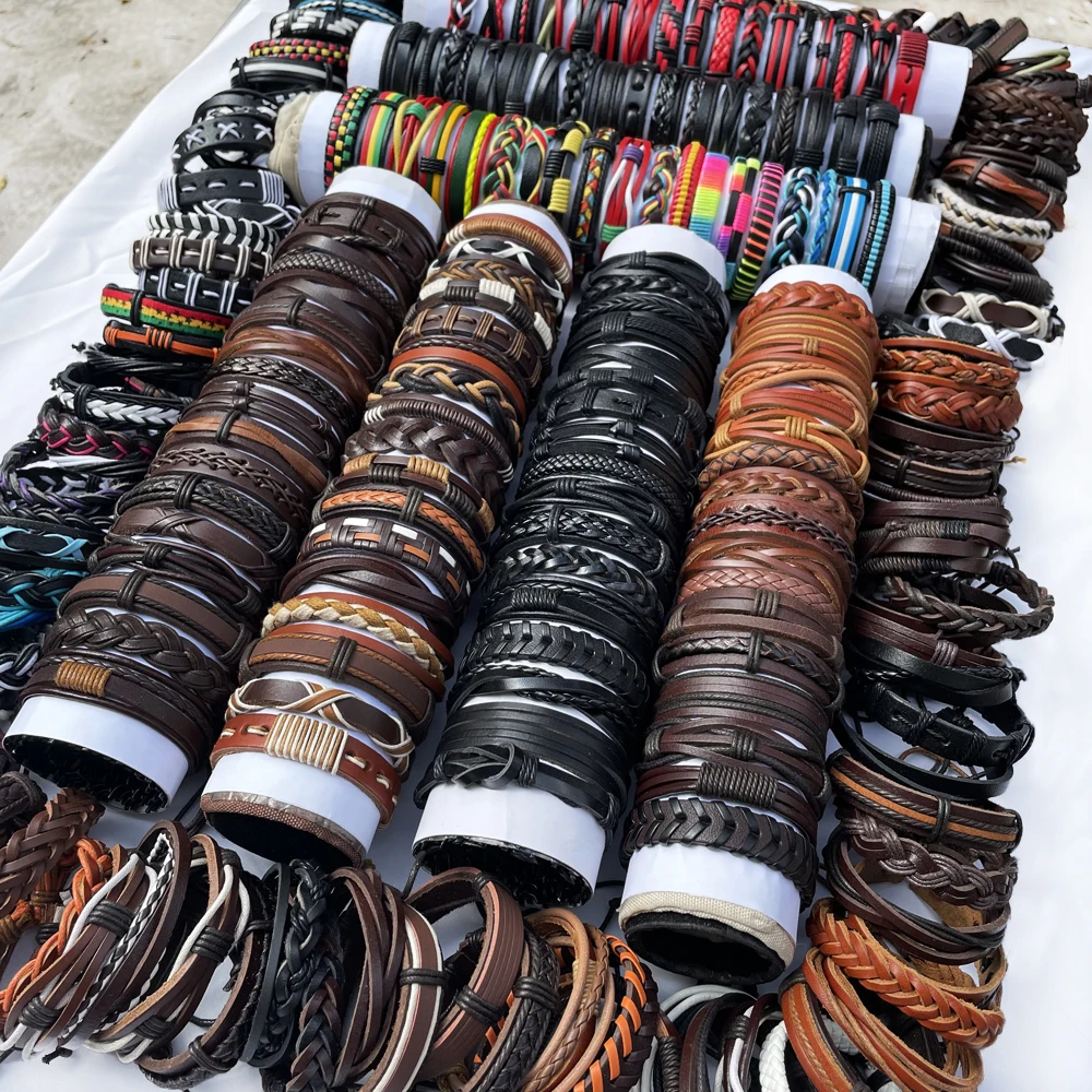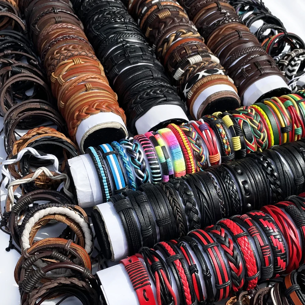 Случайный 100 шт.компл. плетеные кожаные мужские браслеты для женщин мужские ювелирные изделия мужские браслеты WP14