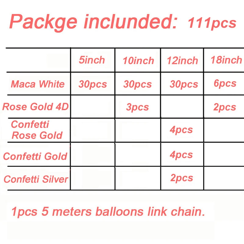 5-дюймовый белый шар 80 шт. 10 дюймов белый шар 120 шт 18 дюймов белый шар 5 шт
