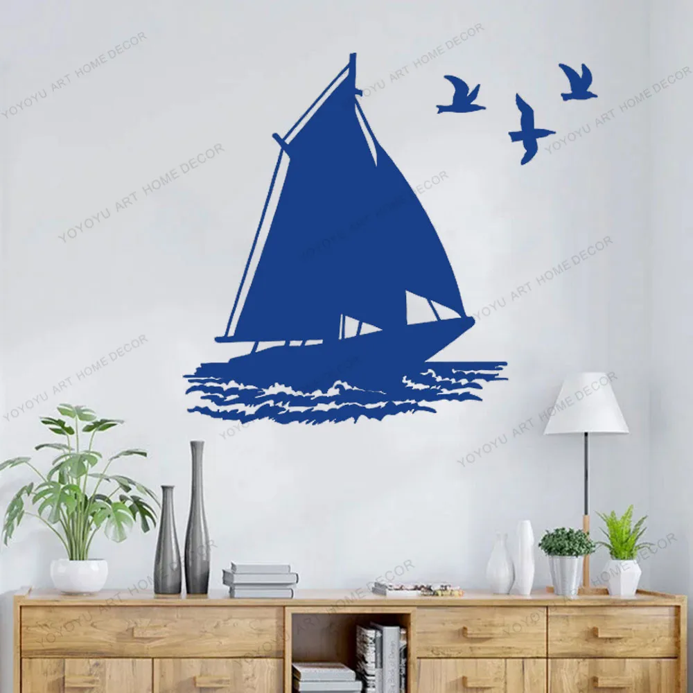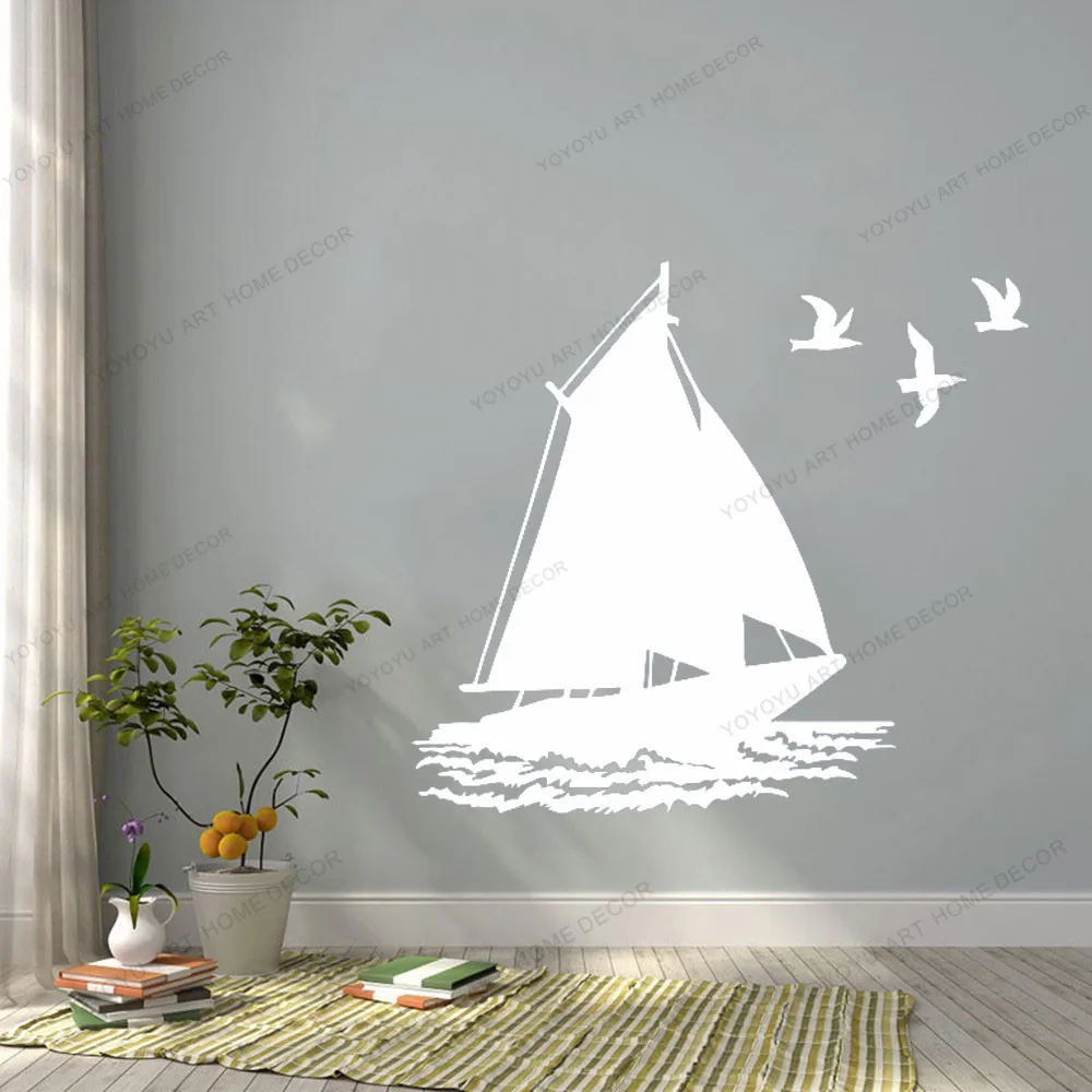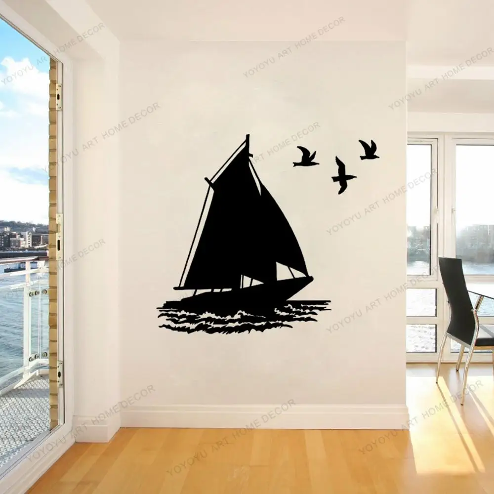Лодка корабль птицы Чайка Океанский парусник Стены Виниловая Наклейка окна стены стикеры Детская Спальня Декор детской комнаты обои CX556