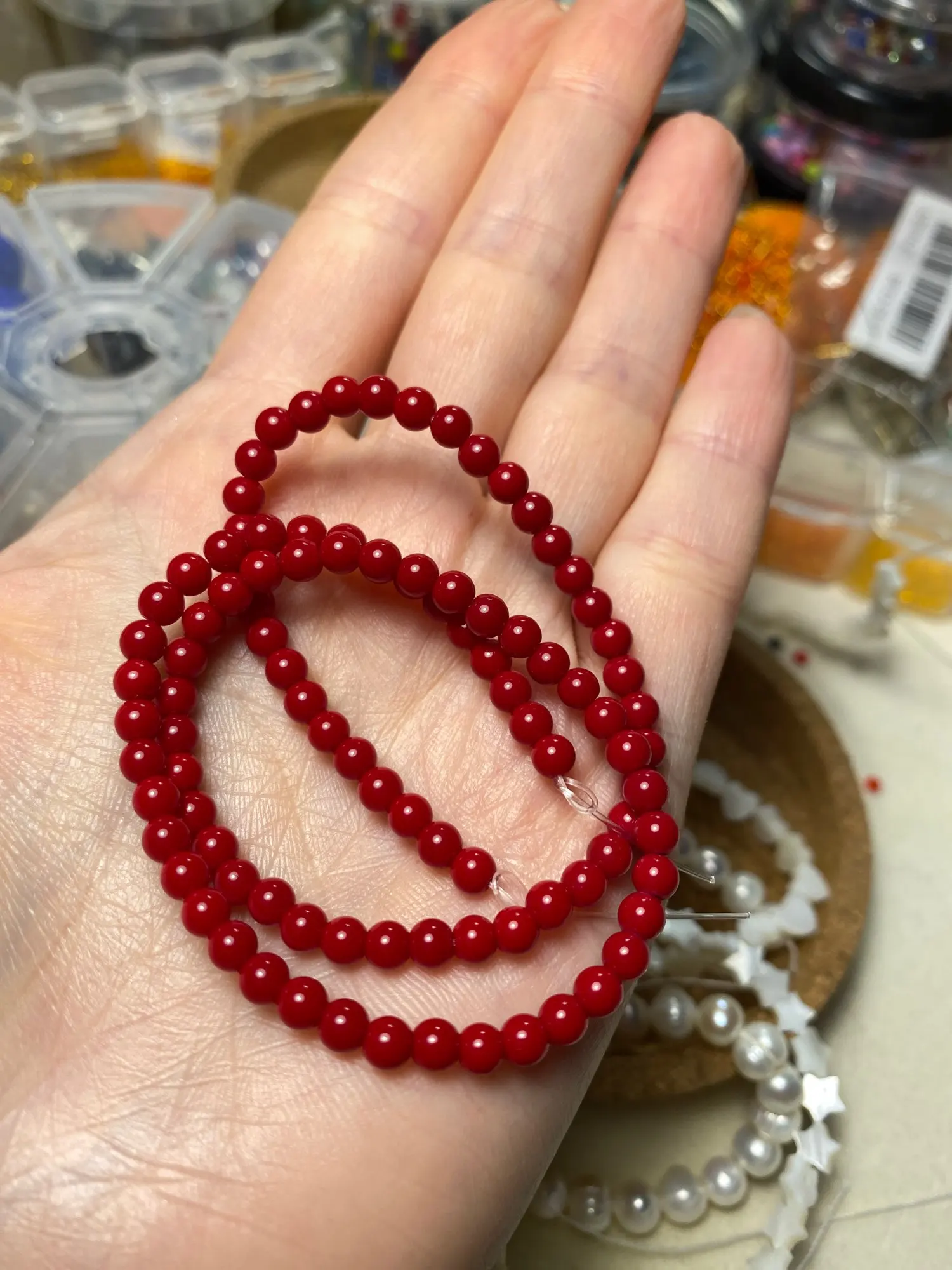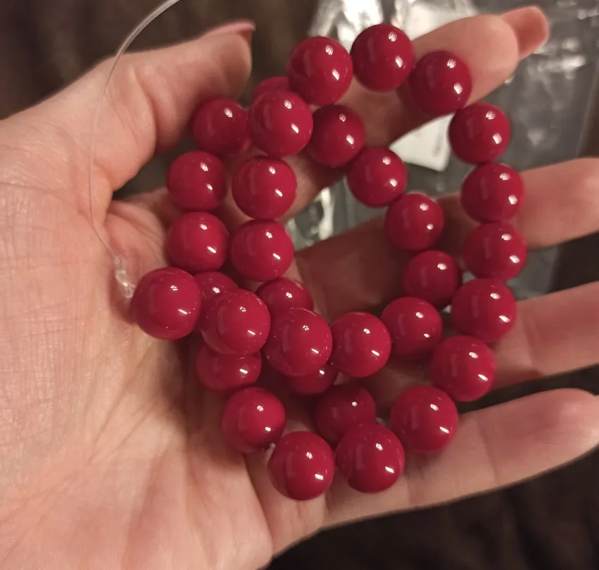 Бусинки отличные, ровные, насыщенного темно красного цвета, очень понравились