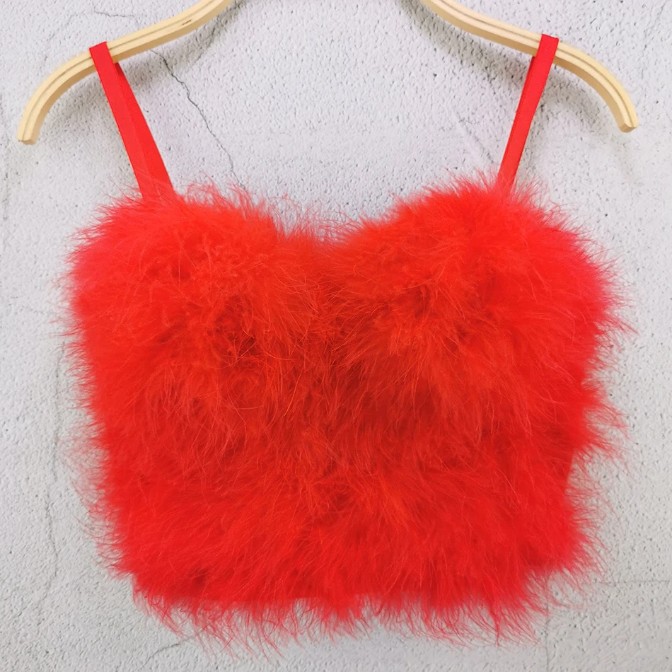 Adyce 2021 новые летние женские красные мини-топы на бретельках без рукавов, Сексуальные клубные вечерние топы с белыми перьями, вечерние топы знаменитостей