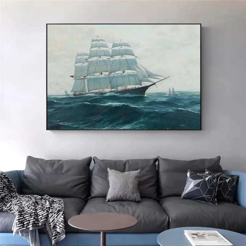 Большой абстрактный постер с красочным океаном, холст, настенные ка...