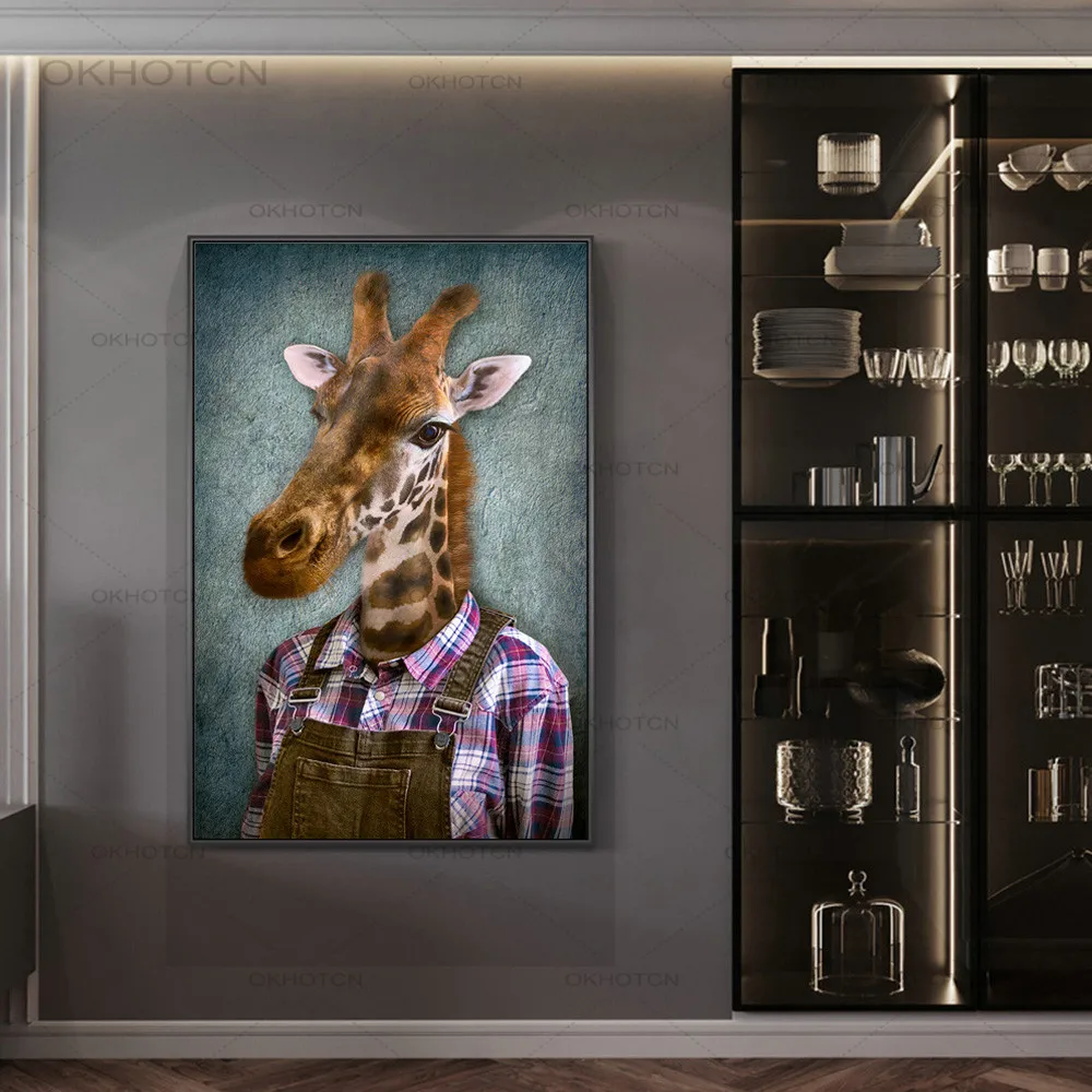 Скандинавский Искусство Жираф Животные в рабочих одежда холст фотообои абстрактный холст фотография
