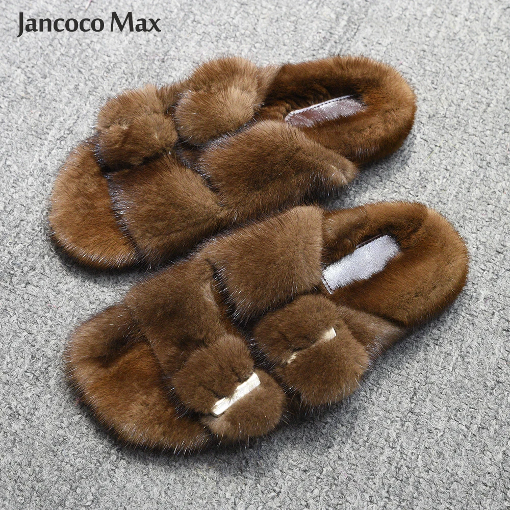 Новые стильные женские шлепанцы из натурального меха норки, зимние шлепанцы высшего качества, шлепанцы для дома S6076