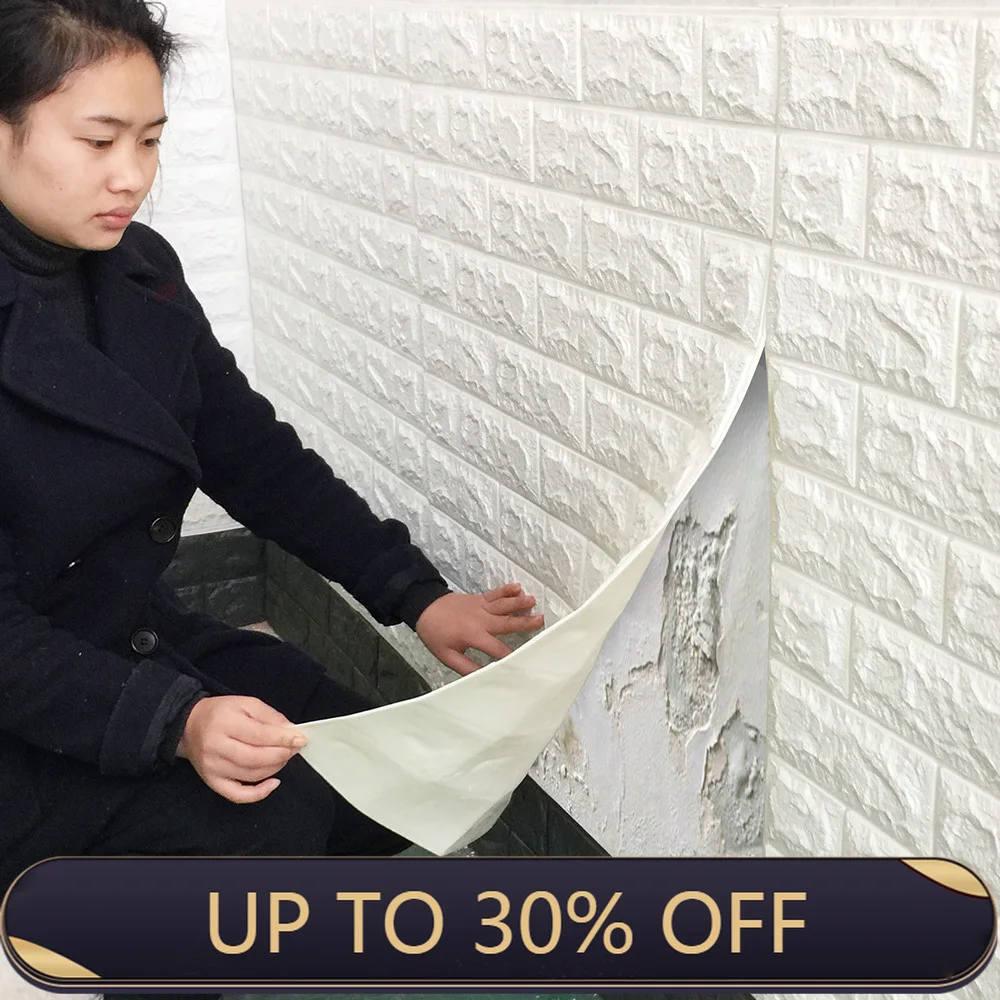 70*77 3d кирпичные настенные наклейки, самоклеящиеся пенополиэтилен...