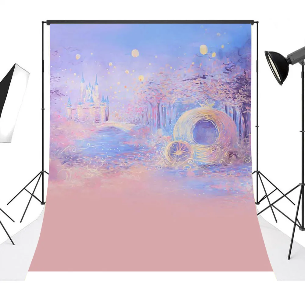 Фон для фотосъемки новорожденных девочек с изображением замка и торта