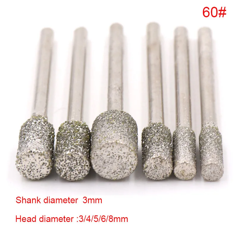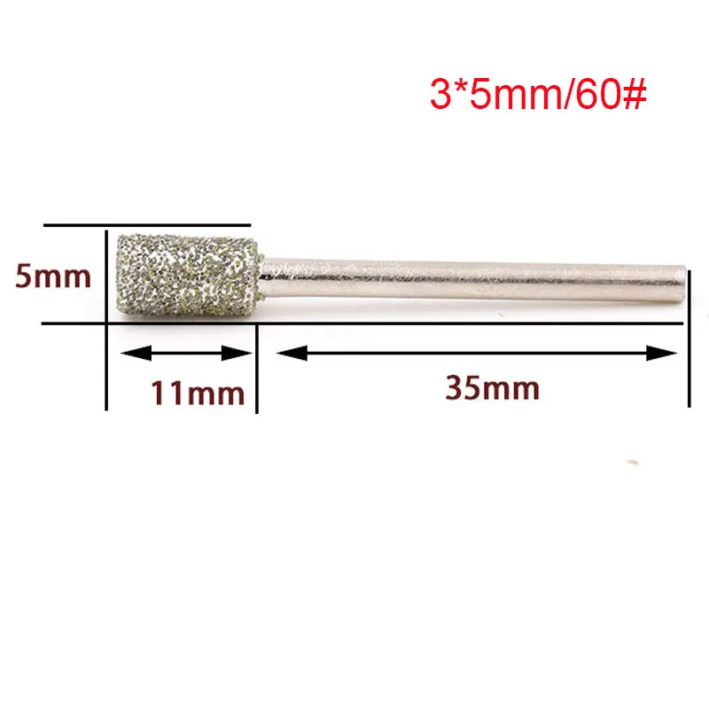 5 шт. 60 # цилиндрическая алмазная шлифовальная головка, заточка для бензопилы, каменная резьба, полировка, гравировка, инструменты, хвостовик 3 мм, головка 3-8 мм