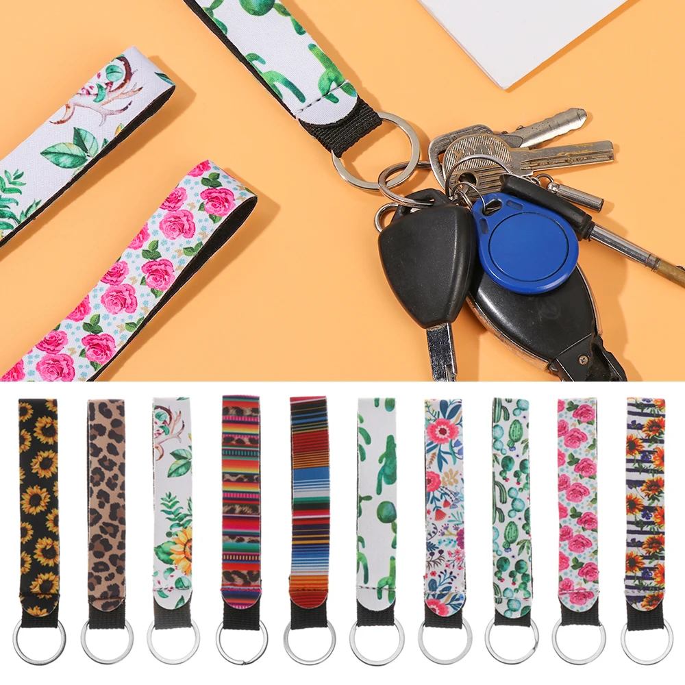 Модный брелок с подсолнухом и леопардовым принтом, длинный висячий ремешок, держатель для ключей, кольцо, шармы, подвески, аксессуары для творчества, 1 шт.