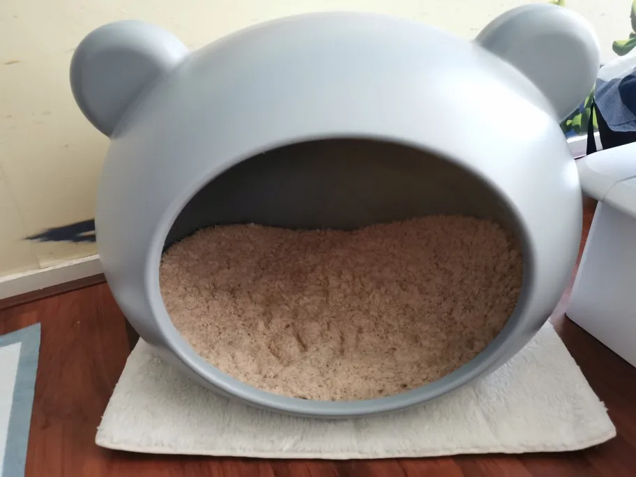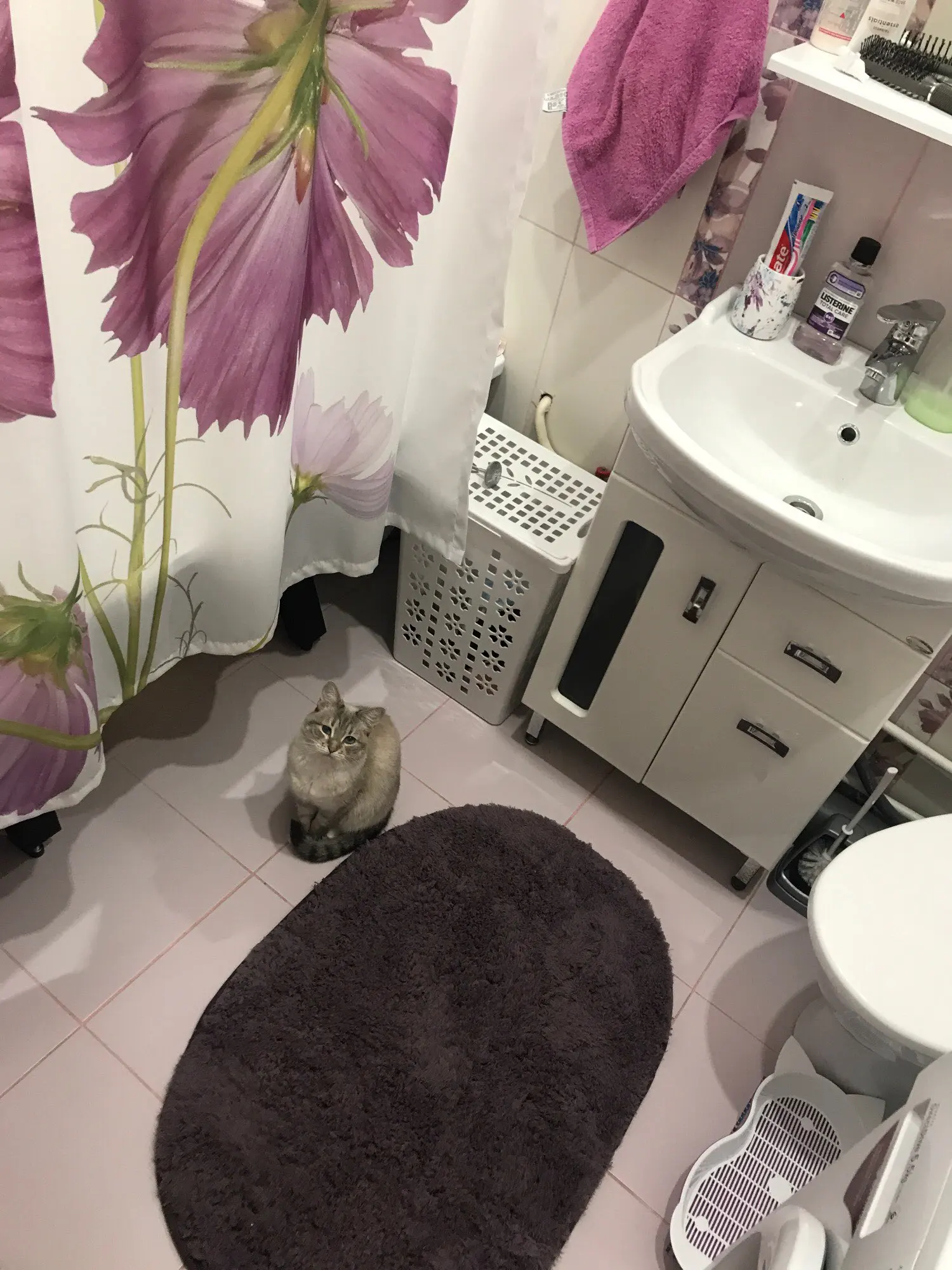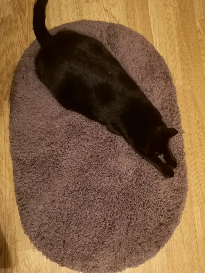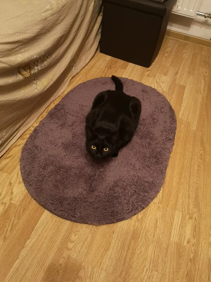 Чуть тёмнее, чем на фото продавца. Очень мягкий. До этого брала два маленьких в ванну. Теперь взяла большой в комнату. Большой чуть мягче, чем маленькие. Кошка одобрила. Пришло быстро до Спб, за пару недель. Забирала в пятерочке.