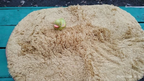 Ковёр пришёл достаточно быстро, очень мягкий, приятный на ощупь. После стирки (ручная с мылом), форму свою не потерял, ворс не лезет, не линяет, единственное, если сушить на батарее, то появляется химозный запах, но я думаю это пройдет.