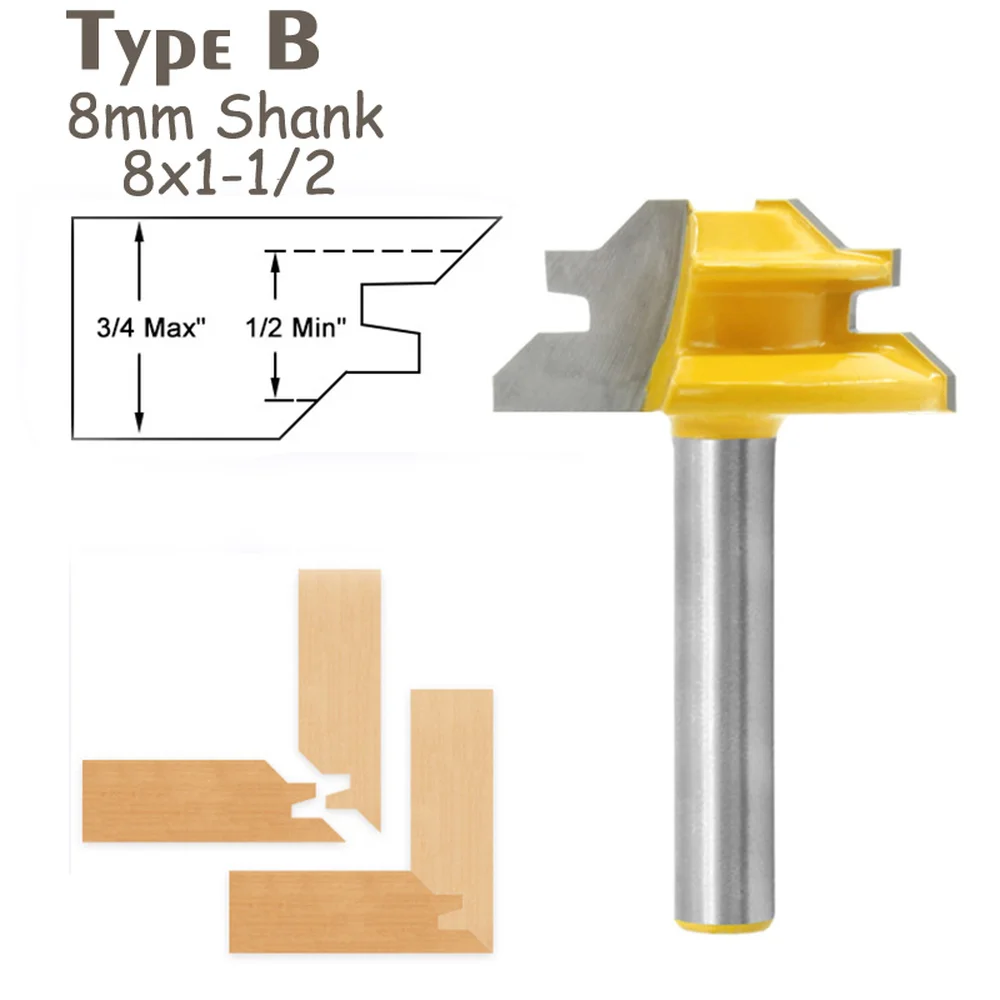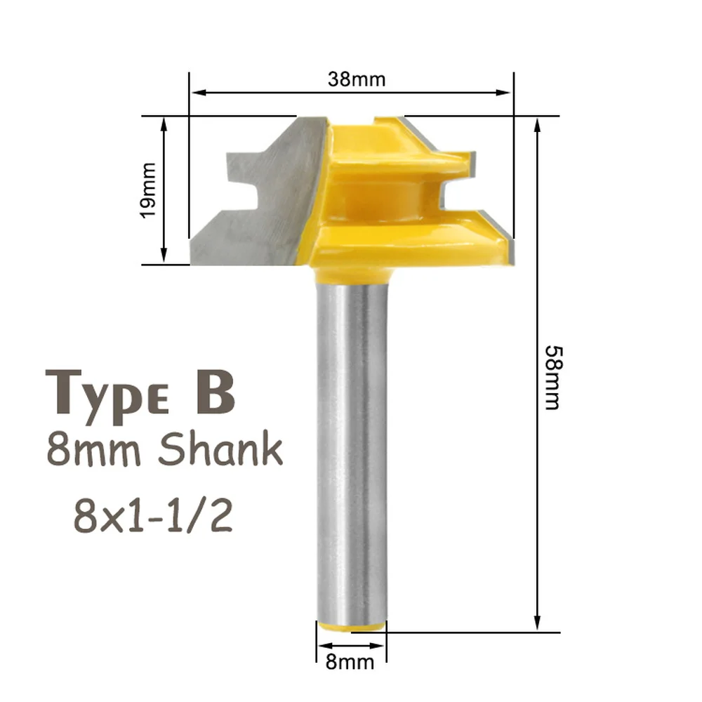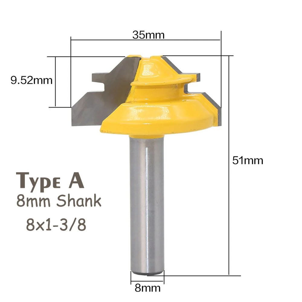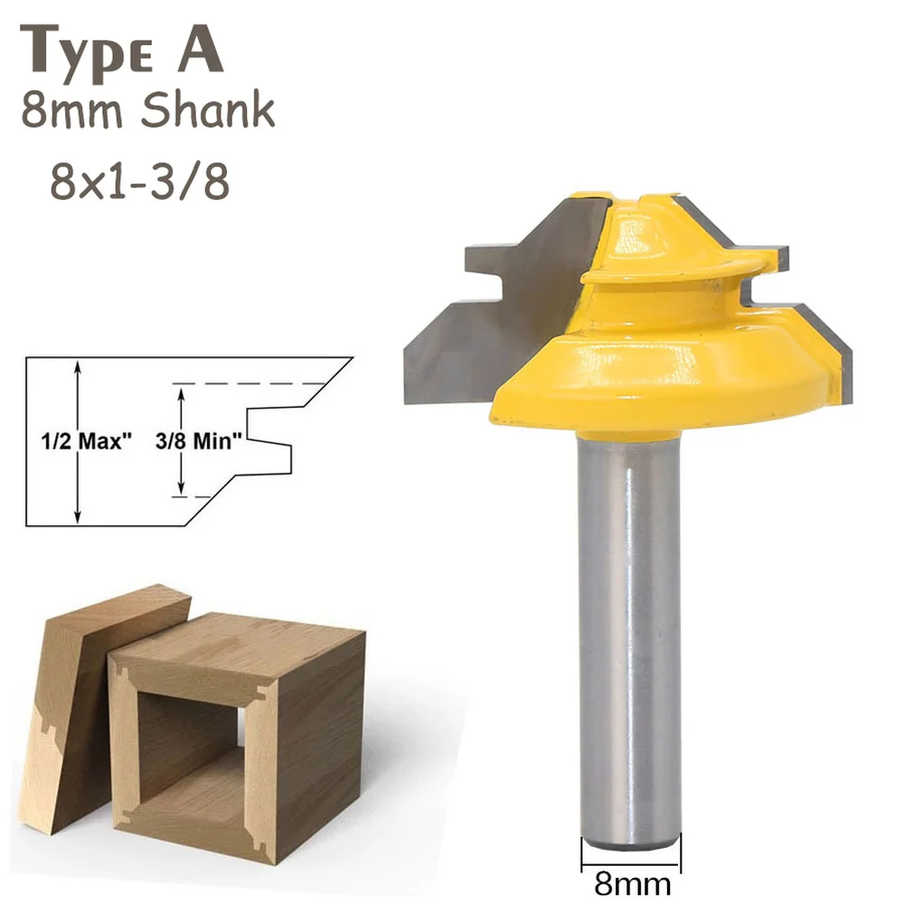 45 градусов Блокировка торцовочный фреза 8 мм хвостовик фреза по дереву для соединения шип-паз фреза инструмент сверлильный фрезерный станок для древесины Карбид сплав 1 шт.