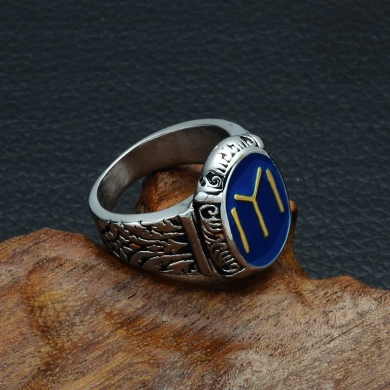 Для Мужчин's Винтаж Viking Древо жизни перстень, с надписью "Lucky ...