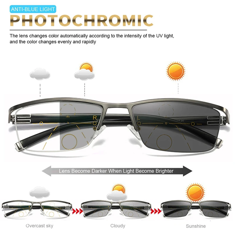 Фотохромные бифокальные прогрессивные очки для чтения, мужские очки...
