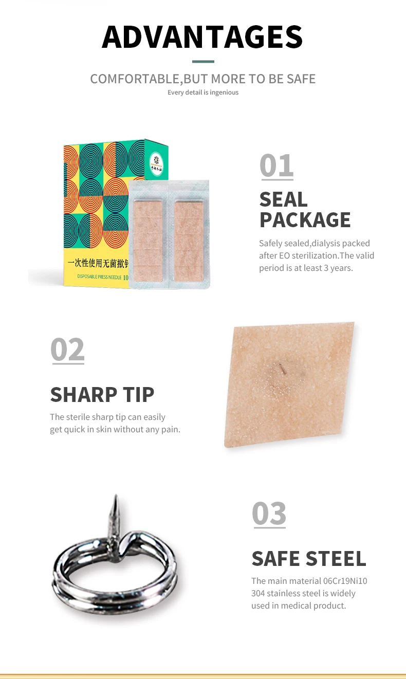 Одноразовый пресс игла Стерильная, иглы для ушей Taihe, инструмент для массажа лица и ушей, иглы для иглоукалывания Zhongyan