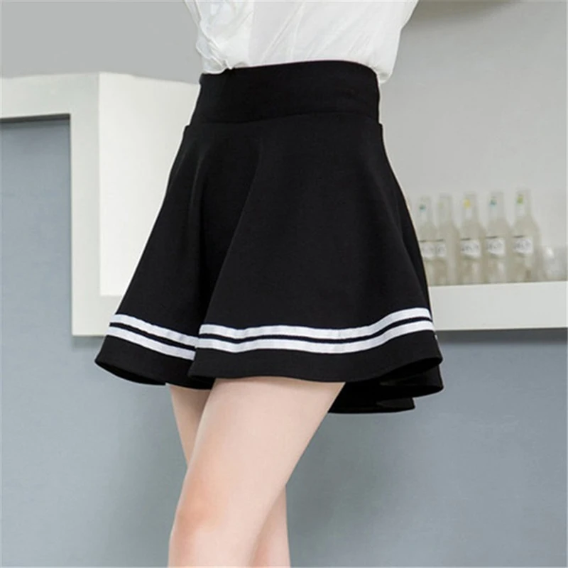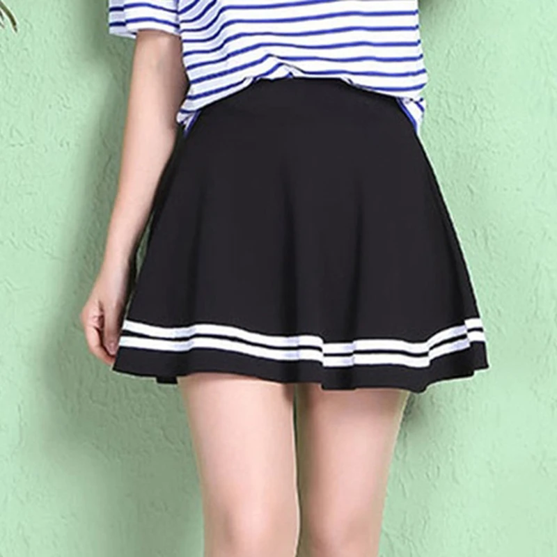 Юбка женская плиссированная с завышенной талией, мини-юбка-трапеция в полоску, в Корейском стиле, с эластичным поясом, для танцев, 2020