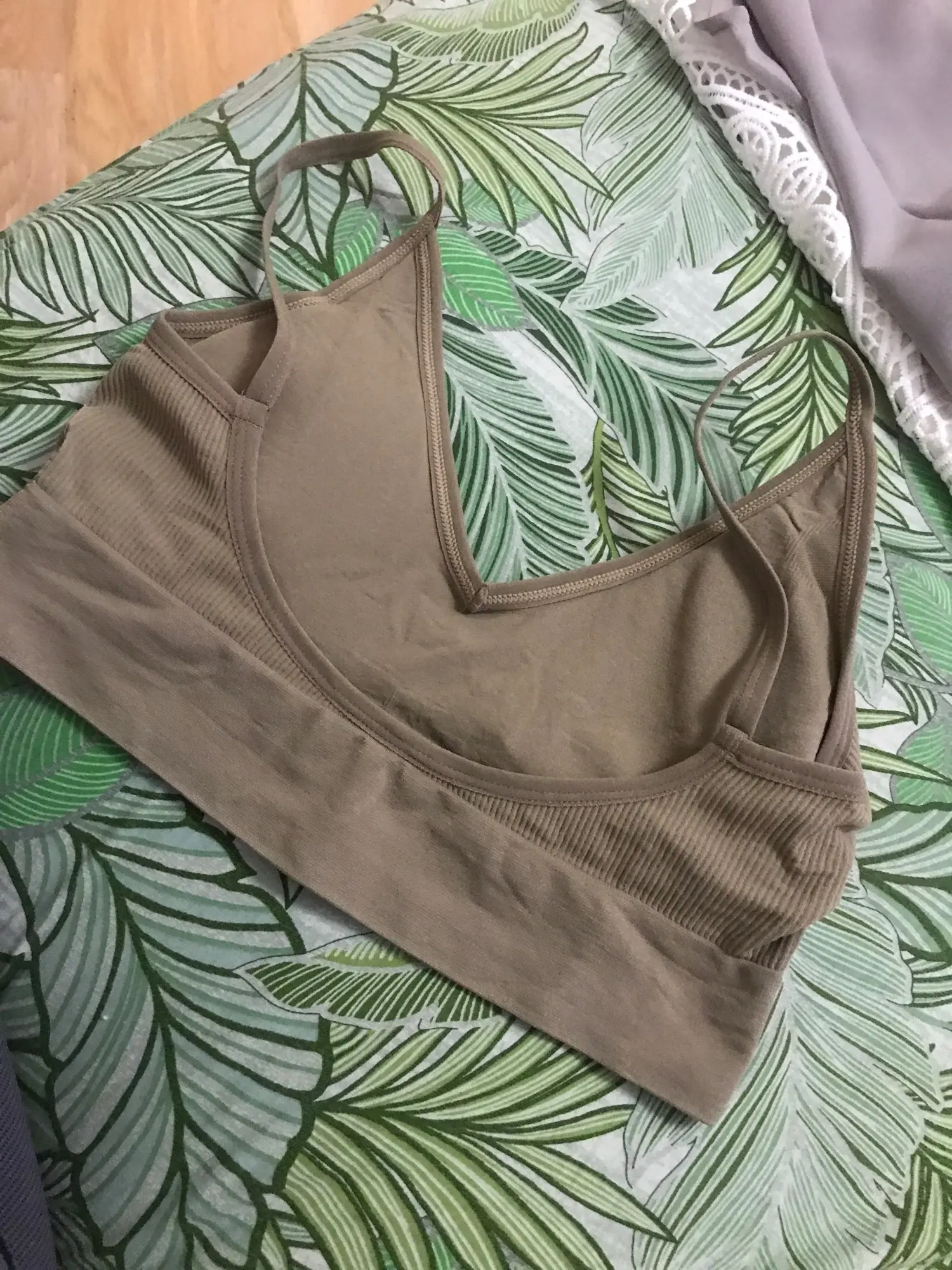 muy buen material, bien la talla tambien. tiene relleno en las copas pero pueden retirarse