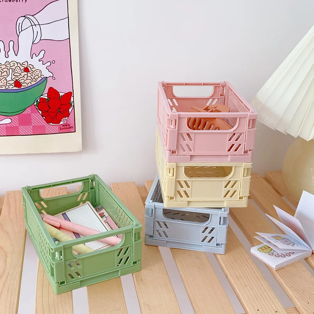 Мини складной пластиковый Настольный органайзер для канцелярских принадлежностей, большая емкость, креативная школьная корзина офисный стол хранение