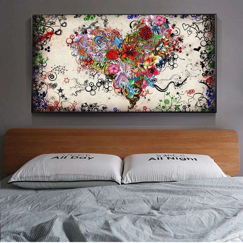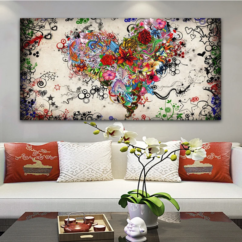Настенная картина с изображением разноцветных сердец и цветов, абстрактные постеры и принты, настенные картины для гостиной, домашний декор без рамки