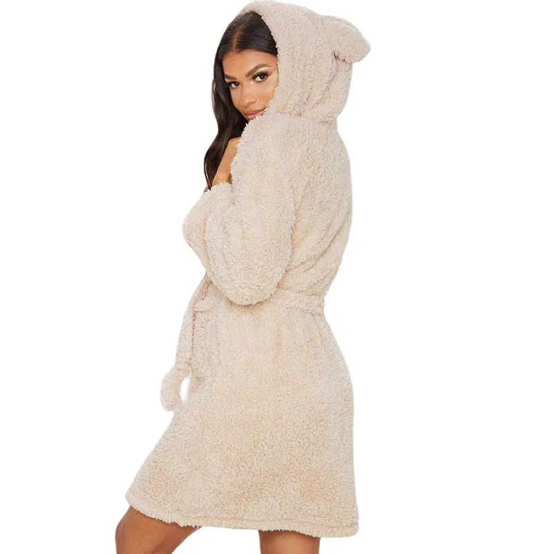 Халат женский плюшевый с капюшоном, теплая Повседневная халата с уш...