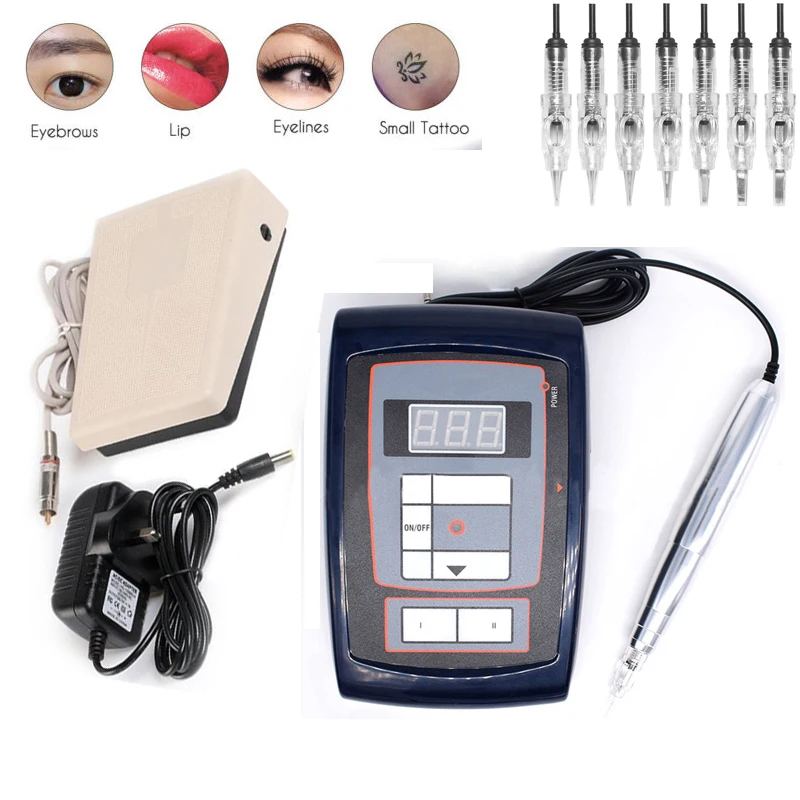 Профессиональная машинка для перманентного макияжа, набор для татуажа бровей, с пистолетом и контрольной панелью, микропигментационная тату-ручка