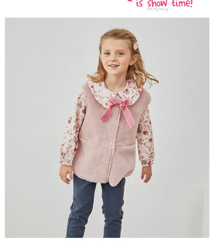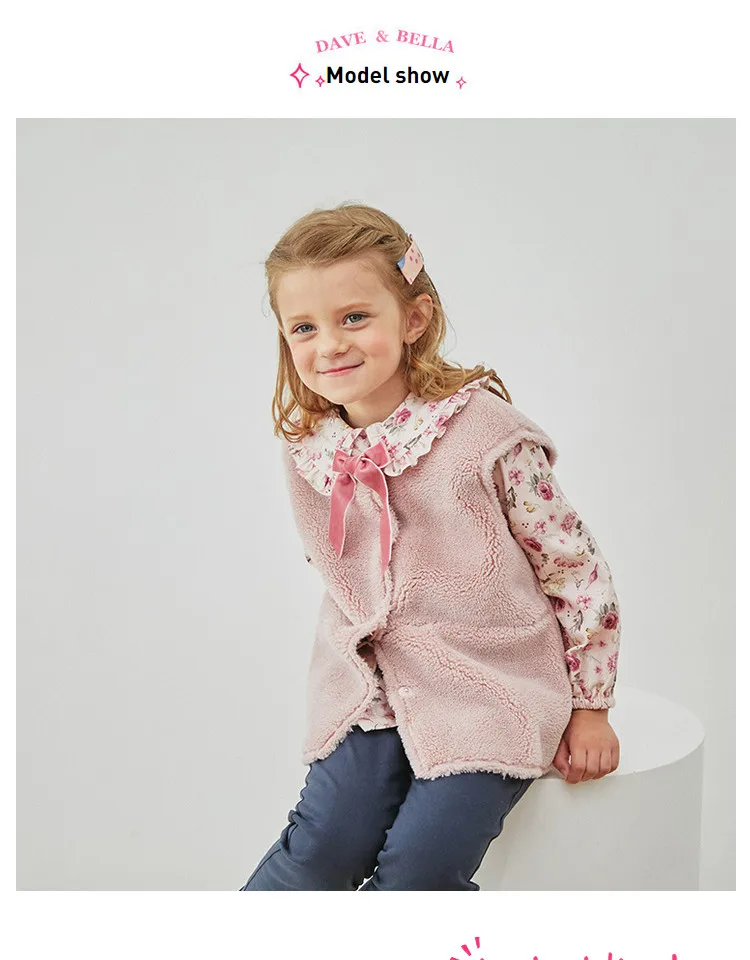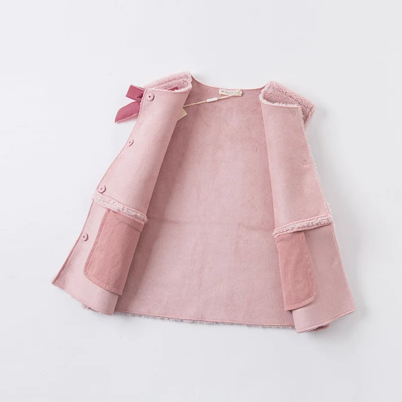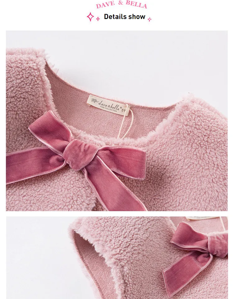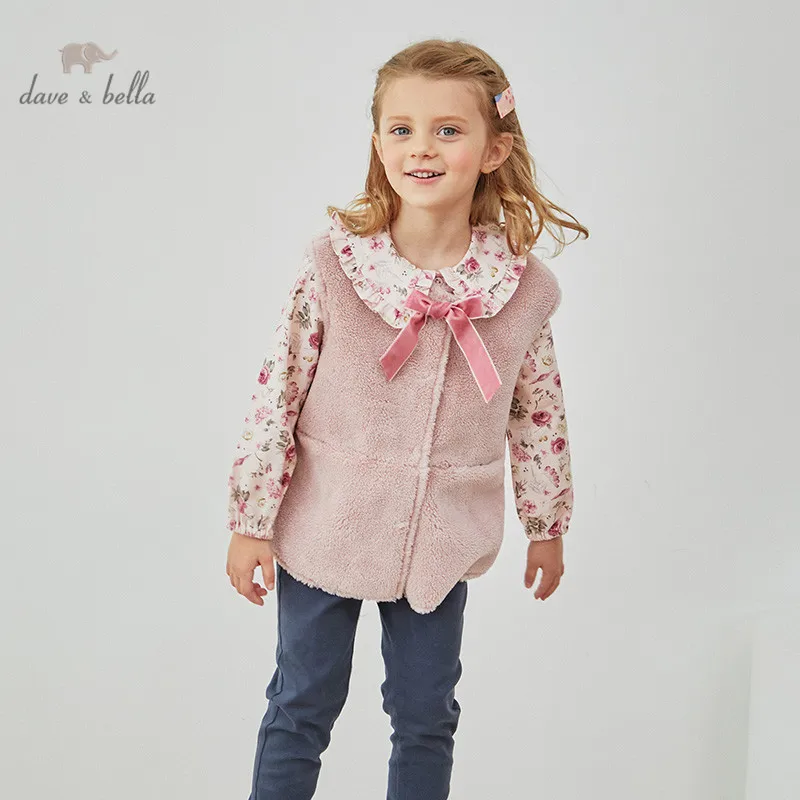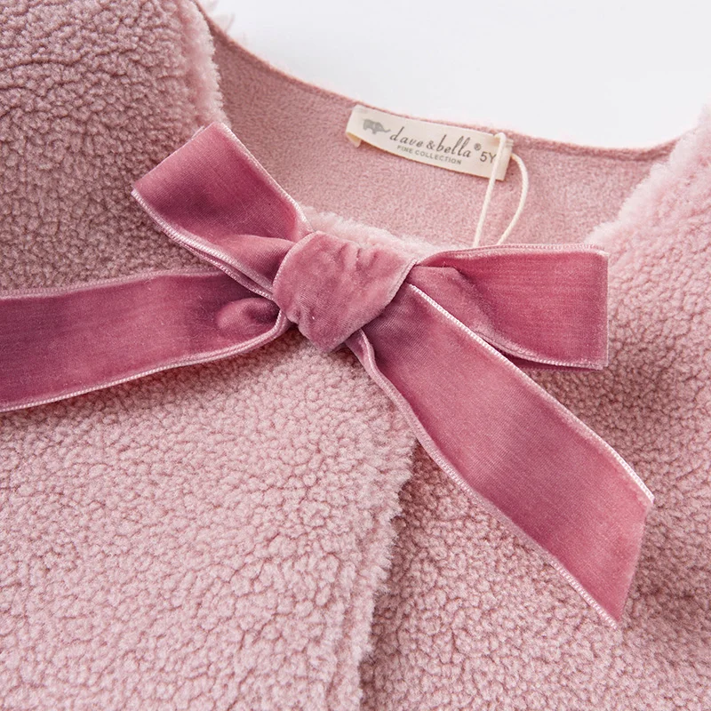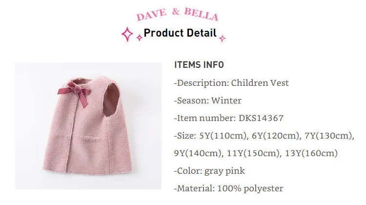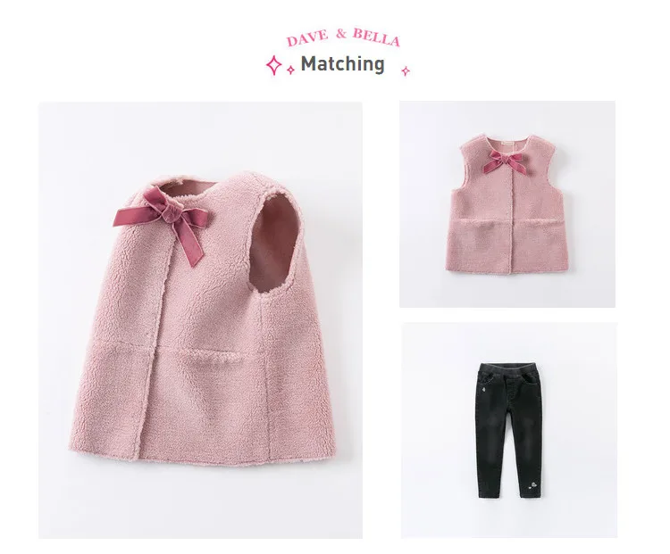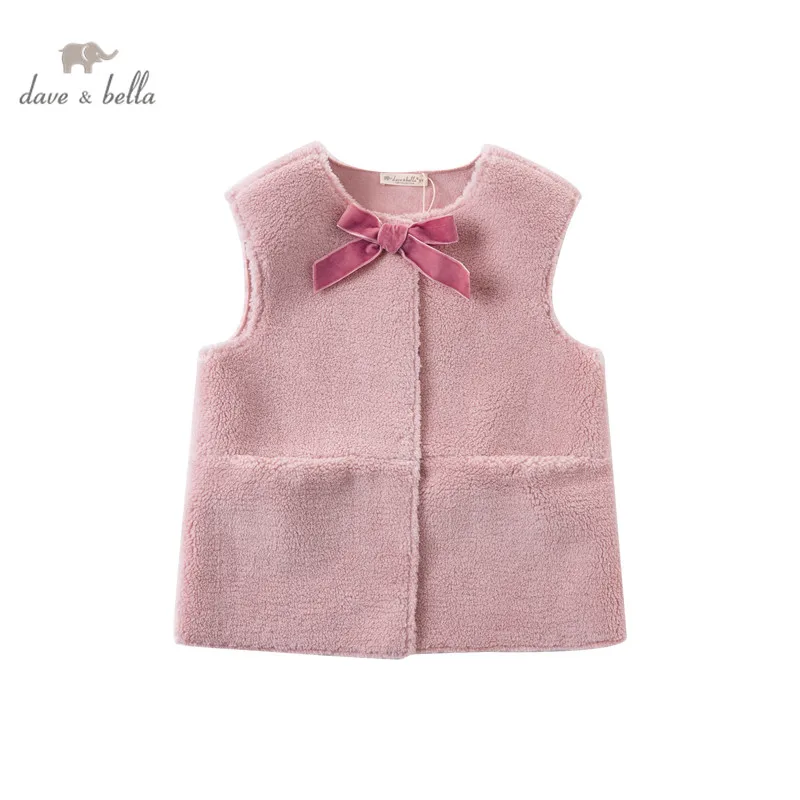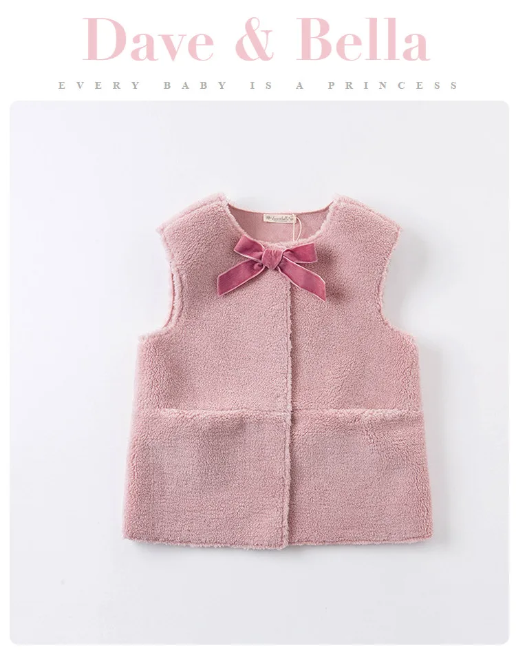 DKS14367 dave bellaзимнее детское От 5 до 13 лет для девочек модное однотонное Стеганое пальто с бантом и карманами детский модный жилет без рукавов