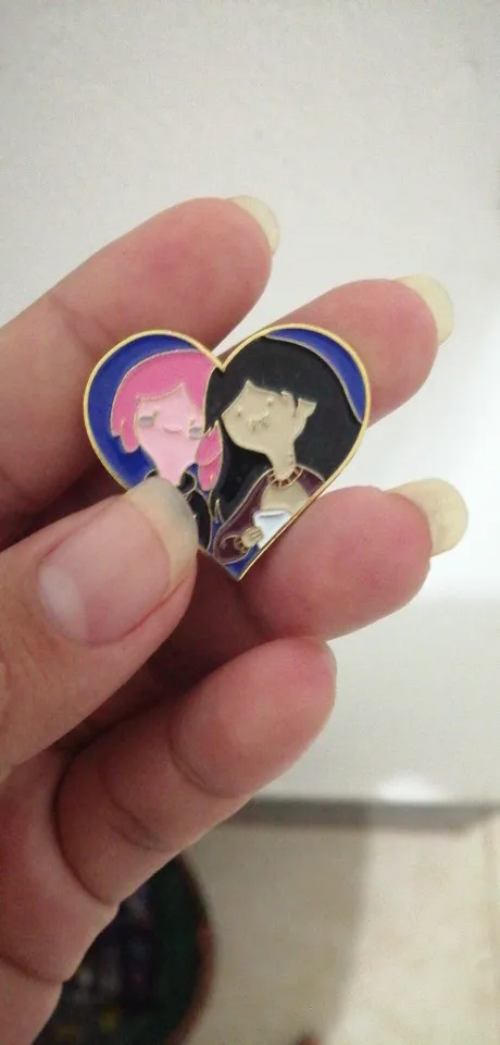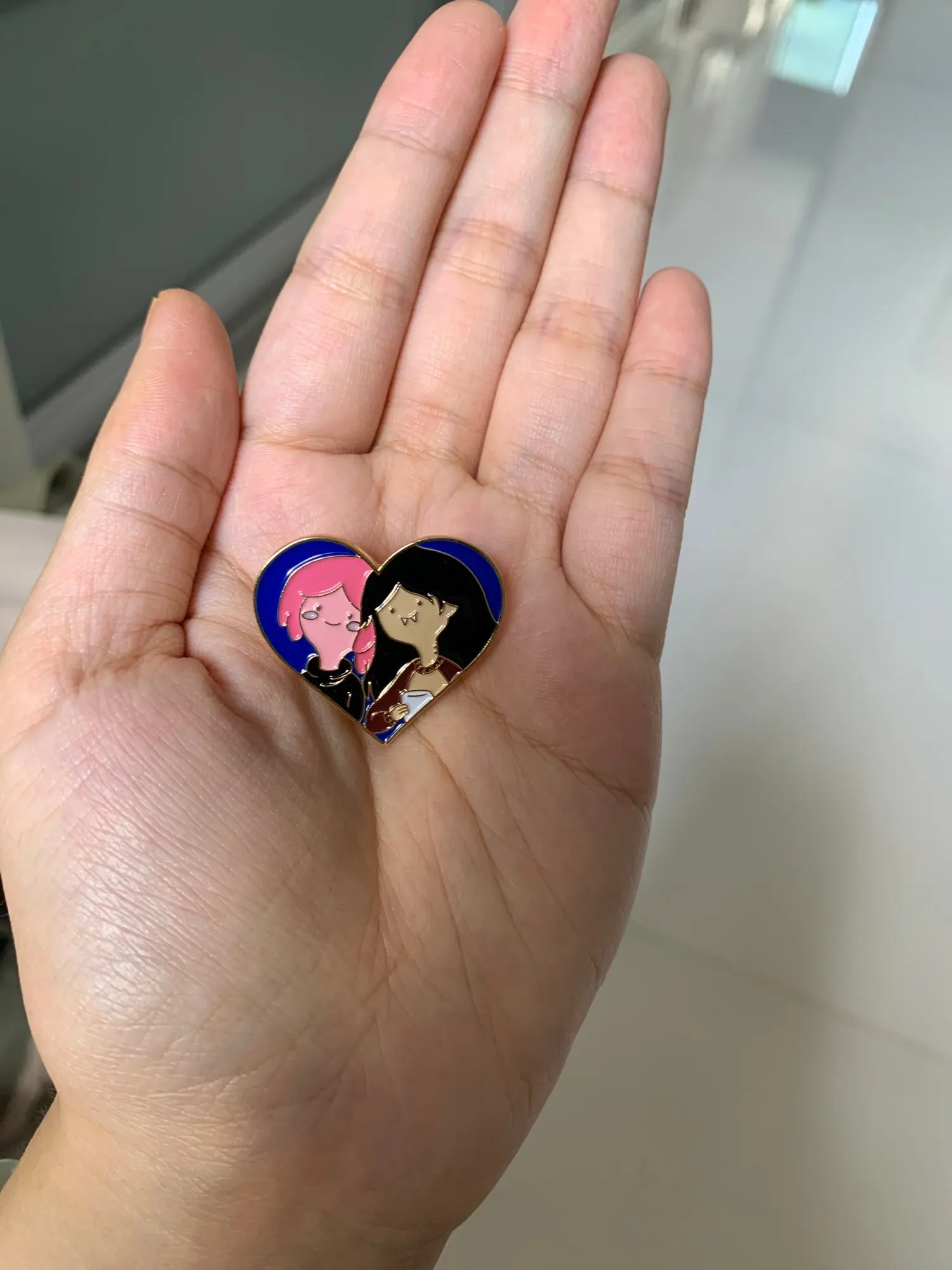 Эмалированный значок в виде пары принцессы жевательной резинки и Марселина, стивенская Вселенная, время приключений, Марси и Бонни, значок в форме сердца