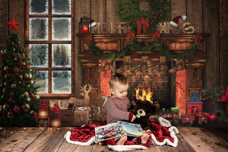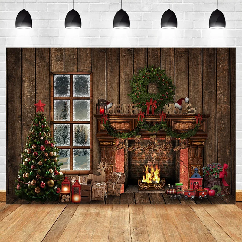 Mocsicka Рождественский фон для фотосъемки с изображением окна снега камина игрушки подарка украшения для фотостудии реквизит для фотосъемки