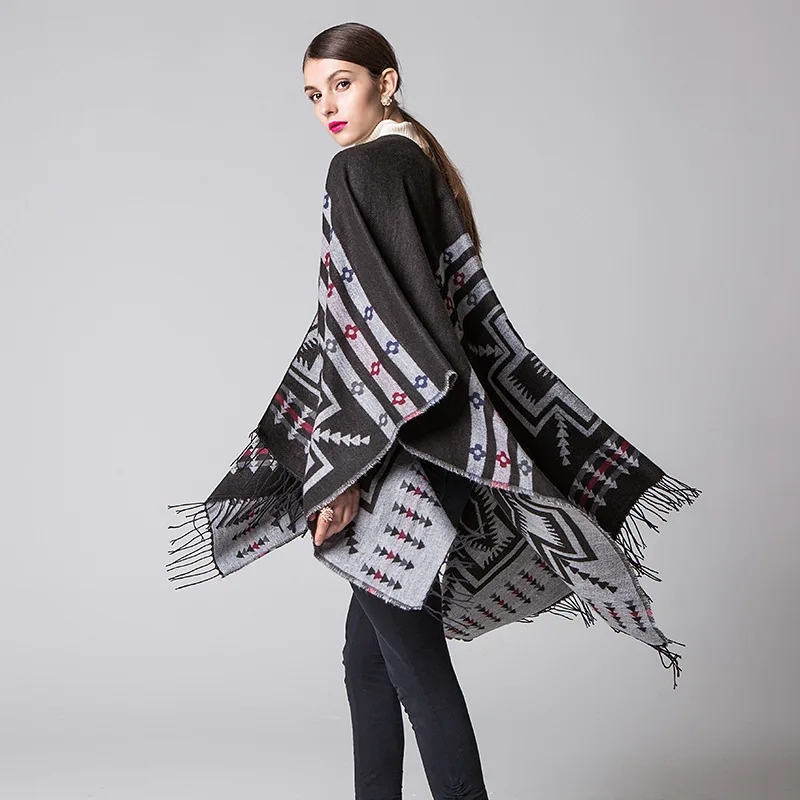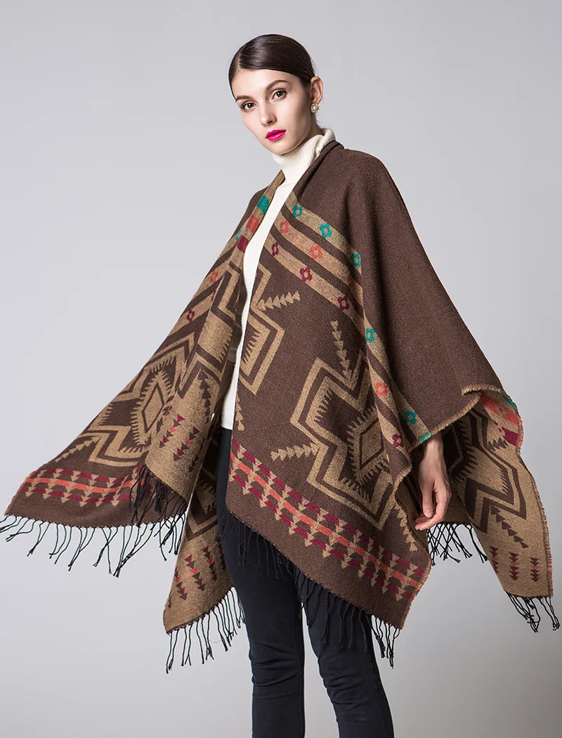 Накидка женская кашемировая с геометрическим рисунком, в этническом стиле
