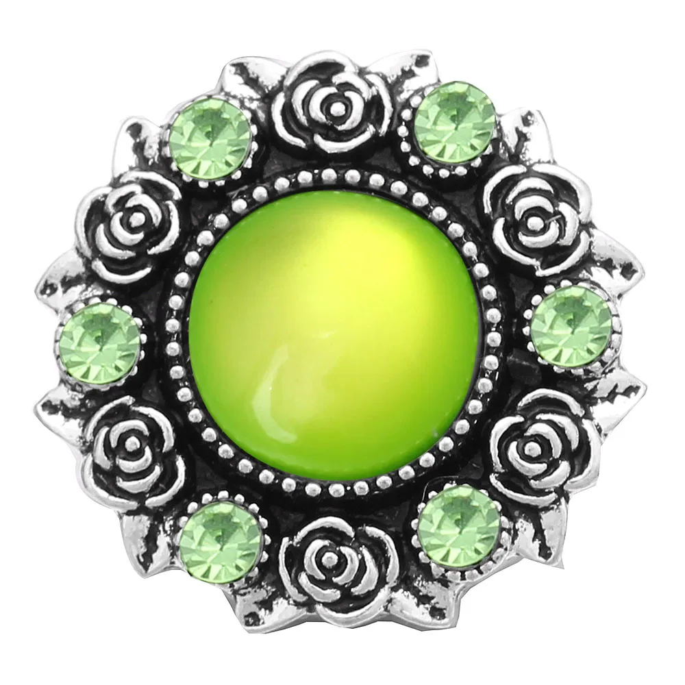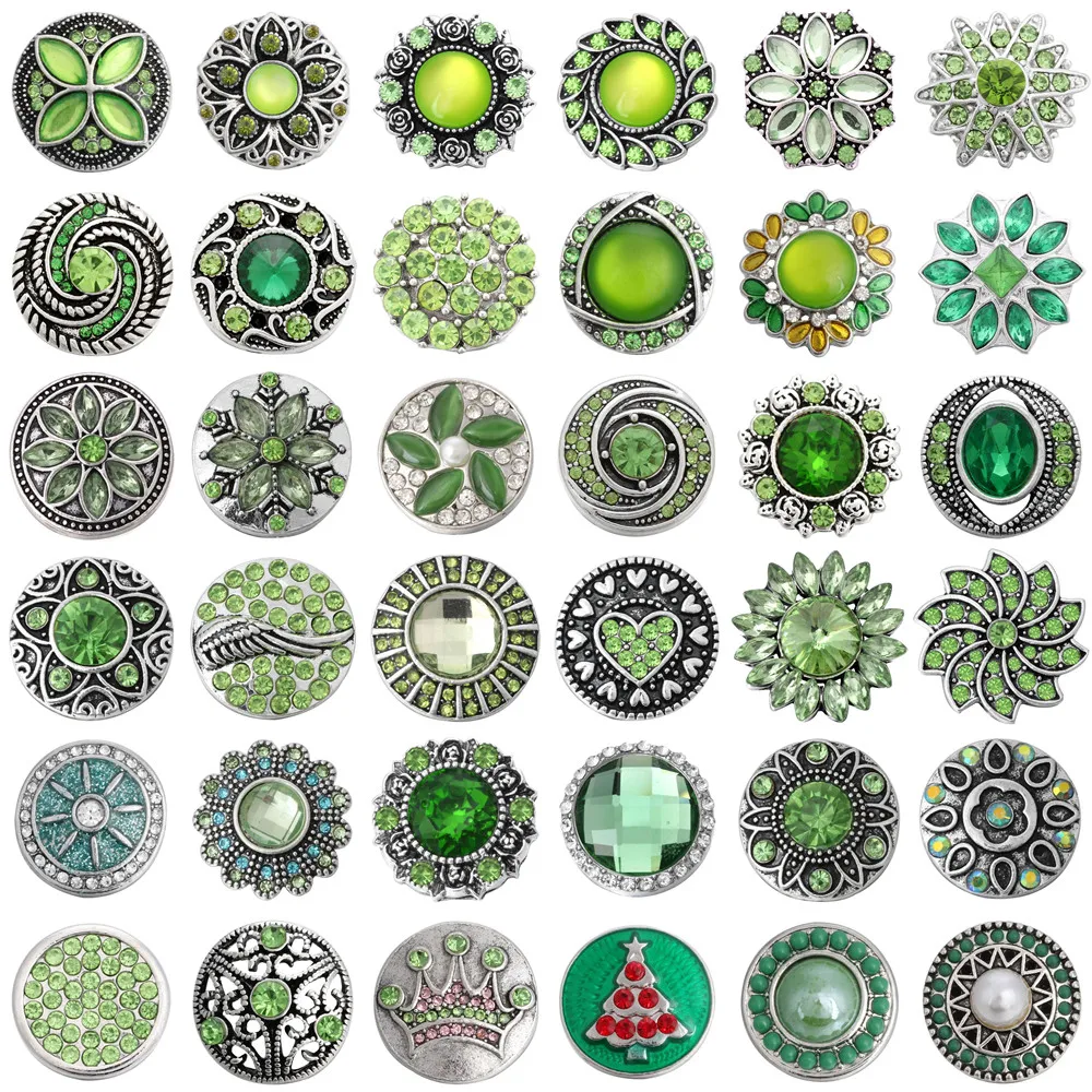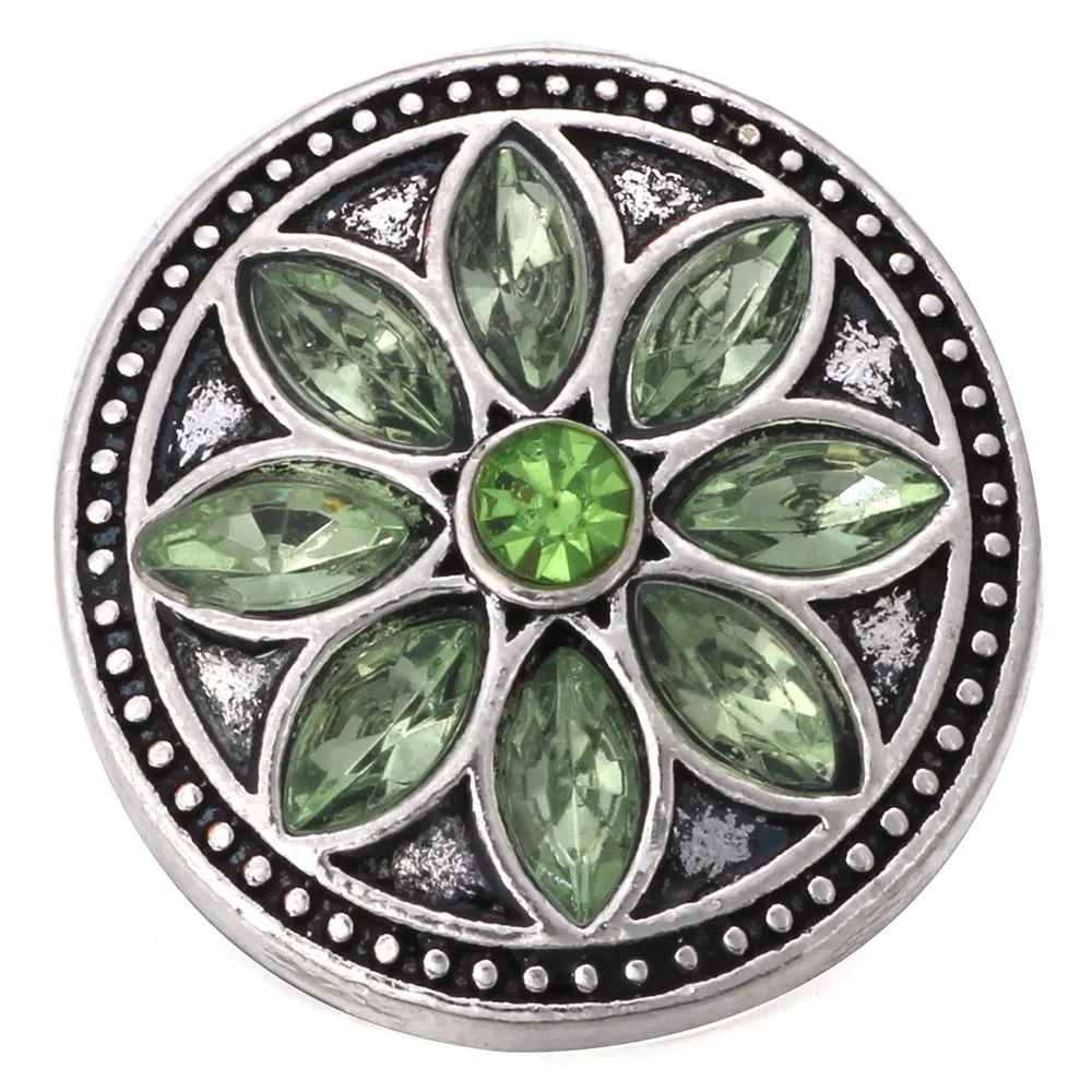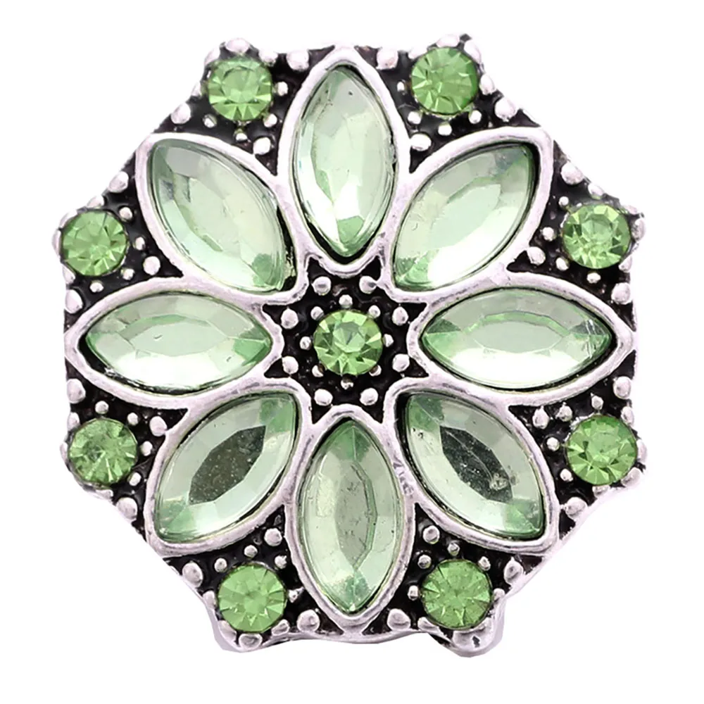 6 шт.лот Горячая оснастка ювелирные изделия смешанный зеленый горный хрусталь Хрустальный цветок 18 мм оснастки кнопки Fit оснастки браслет