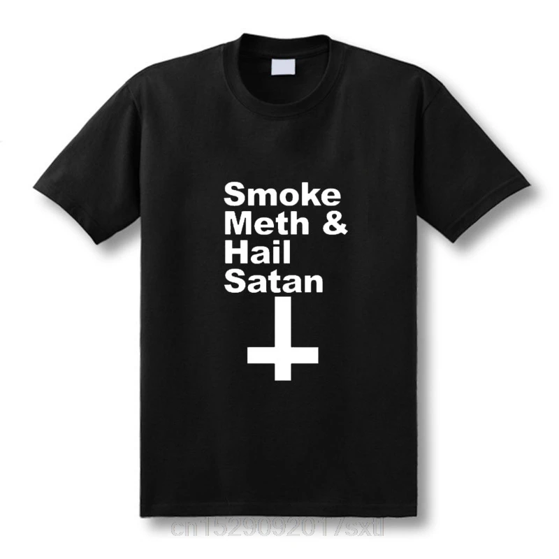 Новинка, летняя стильная модная мужская футболка с дымчатым рисунком, повседневная мужская футболка с коротким рукавом и сатаной, размер с надписью HAIL SATAN