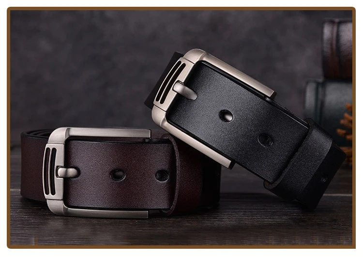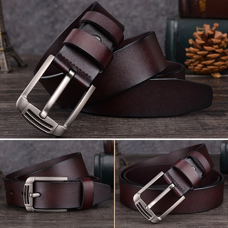 Мужской ремень из натуральной кожи с металлическим сплавом и шпилькой