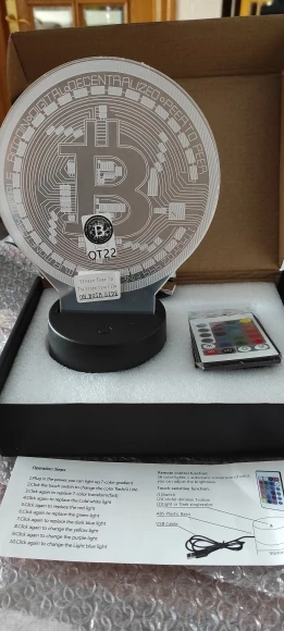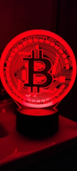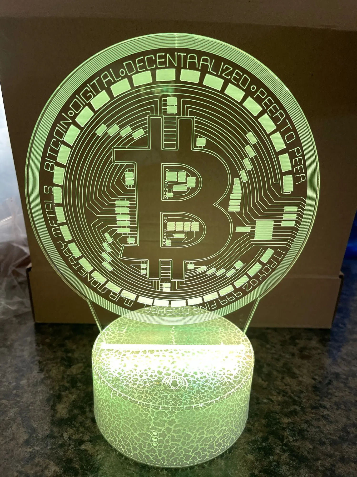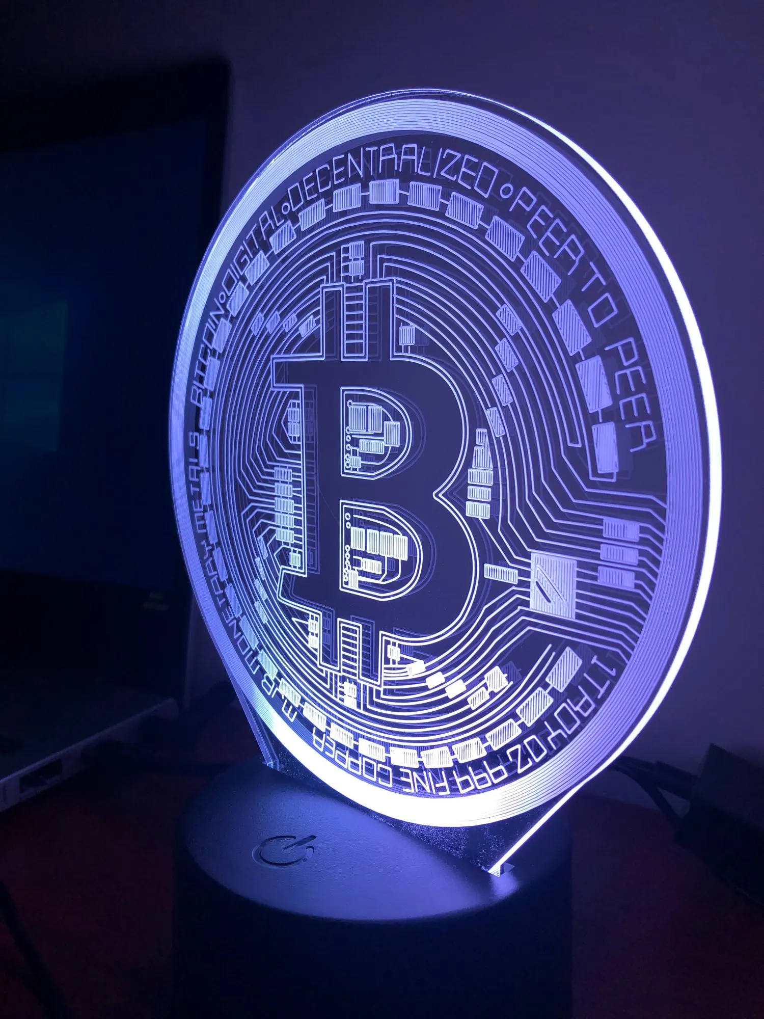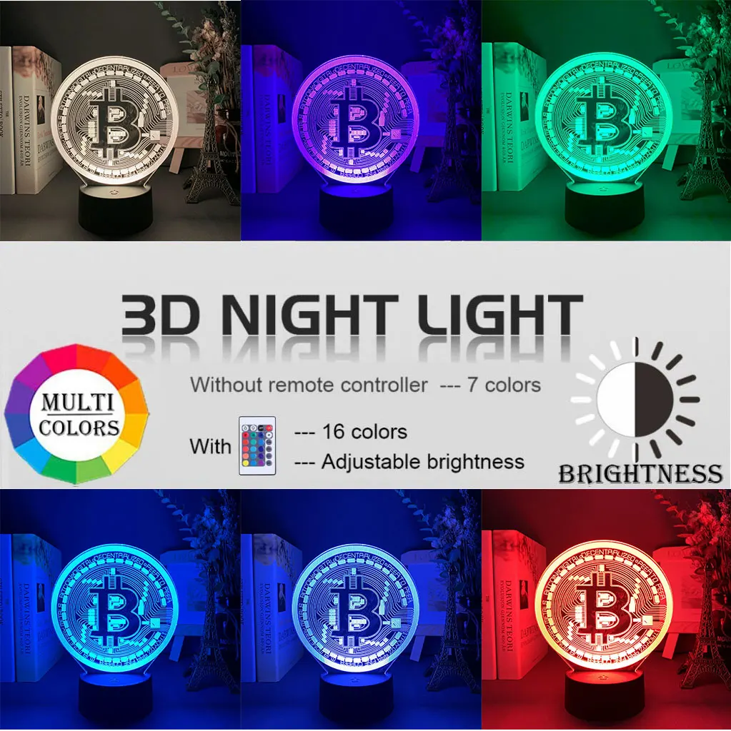 Акриловый светодиодный ночсветильник Биткоин для комнаты, декоративный ночсветильник, сенсорный датчик, 7 цветов, меняющий батарею, настольный ночник 3D