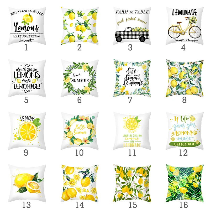 Летние желтые лимонные декоративные подушки, наволочка чехол для по...