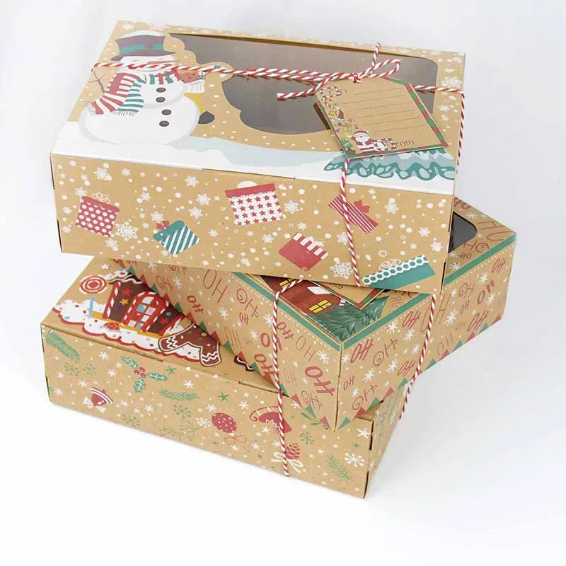 3 шт. Рождественская коробка для печенья из крафт-бумаги, подарочные коробки для праздвечерние, коробки для конфет, рождественский стиль, бумага для больших детей, новогодний подарок, декор 2021