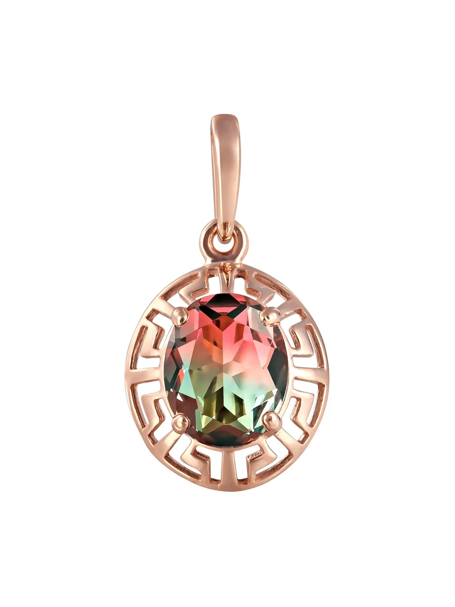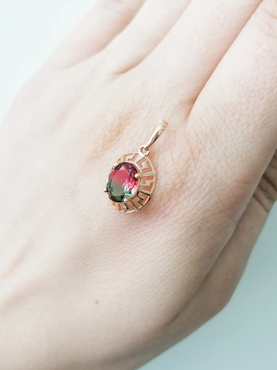 Пл. кварц турмалин арбуз Размер кварца 9 х 7мм. Длина подвесной части 18мм, ширина 13мм. Длина ушка 8мм.