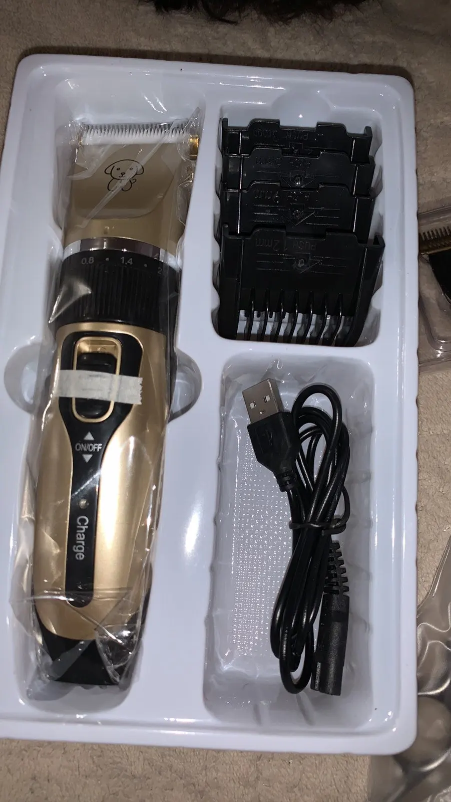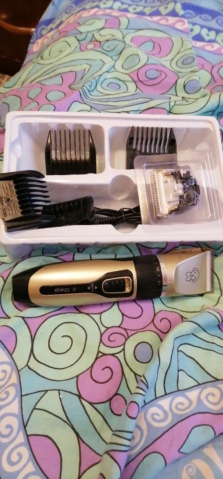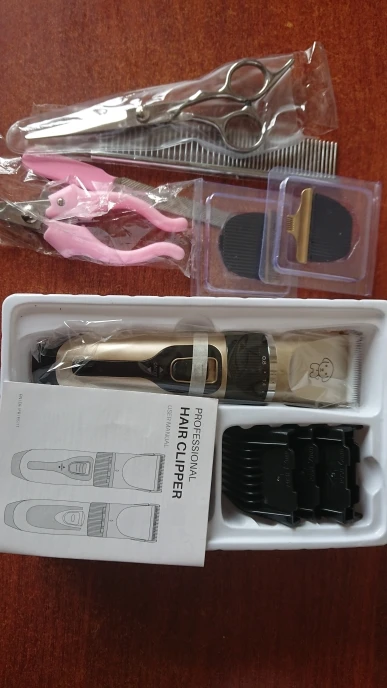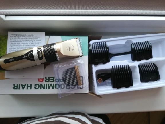 Супербыстрая доставка, всего за четыре дня в Ростовскую область курьером. Машинка пришла в полном комплекте, как и заказывал. Заряженная на 100%. Работает тихо, моя старая машинка для стрижки людей более громкая. Собаку пока не стригли, пусть привыкнет к звуку. Зато жена подстригла меня, на удивление получилась прекрасная стрижка. Думаю что и пёсика пострижет без проблем. Позже постригу его и дополню отзыв. Если вы ещё раздумываете, покупать или нет, однозначно советую - берите.