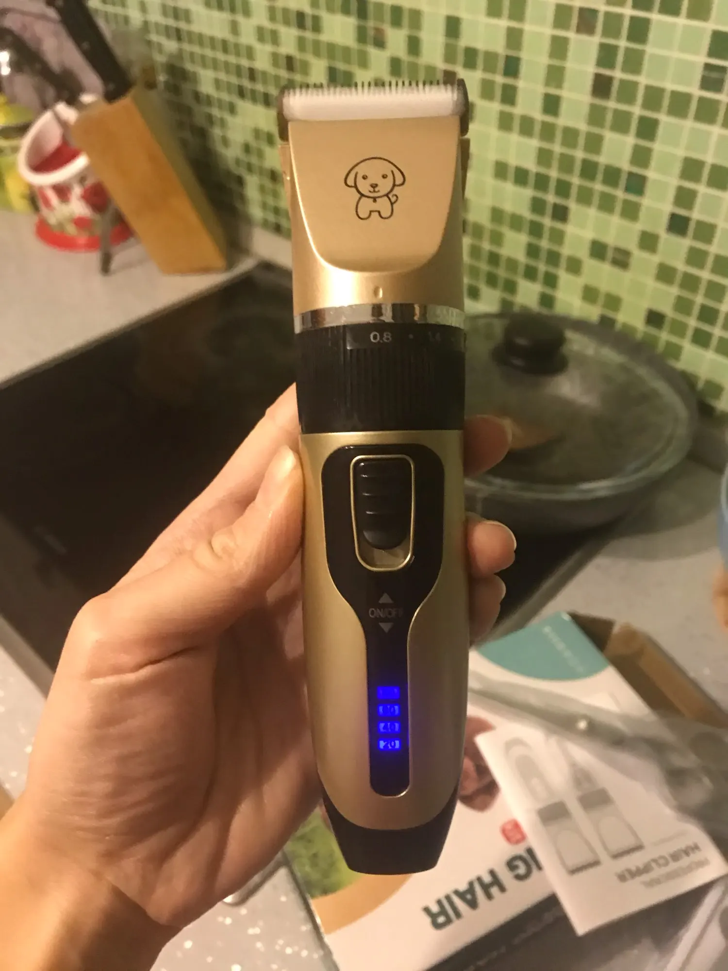 Товаром доволен. Супруга стригла собачку первый раз и всё получилось.Стрижка получилась ровной и аккуратной. Стоимость машинки окупилась за один раз. Аккумулятор стоИт 18650 емкостью 1200 mAh
