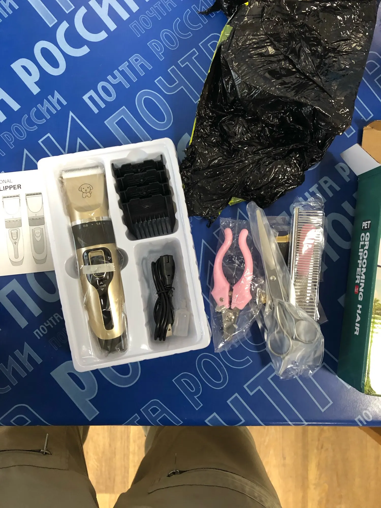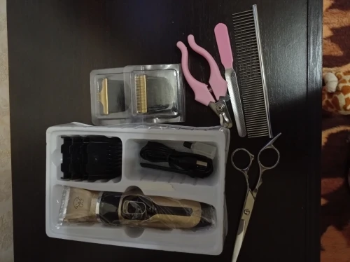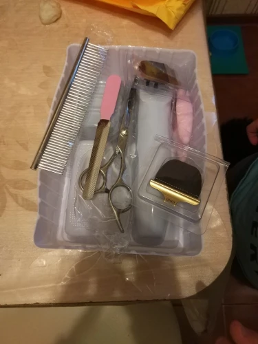 Заказа сделала 21.01, 31.01 забрала с почты г. Владимир (180 км от Мск). Все красивое и не хлипкое! Такое прям добротное! Брала полный набор. Аппарат заряжен, жужжит знатно, но я ещё не пробовала им. Ножницы ОСТРЫЕ! Я вообще ни разу не парикмахер. Лапы подстригла идеально! Расчёска классная, вычёсывает лучше, чем у собаки была. Пилку не оценила) Насадки тоже хорошо сделаны, прям отлично. Все очень хорошо упаковано. Ах да! Ещё первый раз стригла собаке когти, все получилось! Ура. Хотя до этого не получалось. Вообще когтесрижка прикольная, с фиксатором и штучкой, чтобы когти не разлетелись.